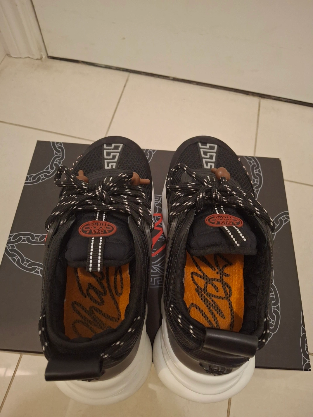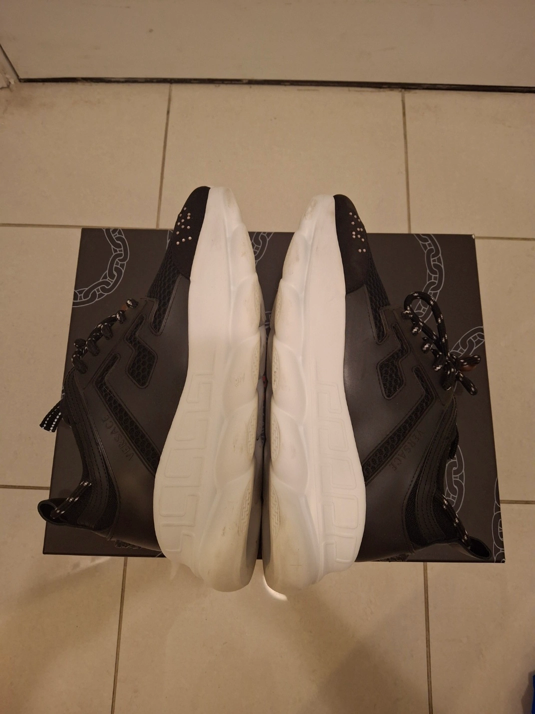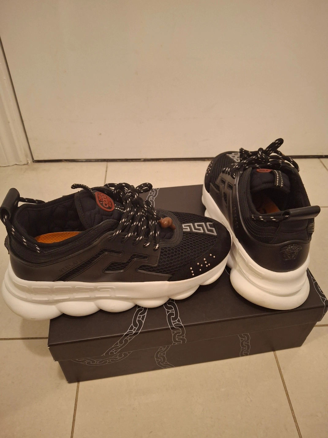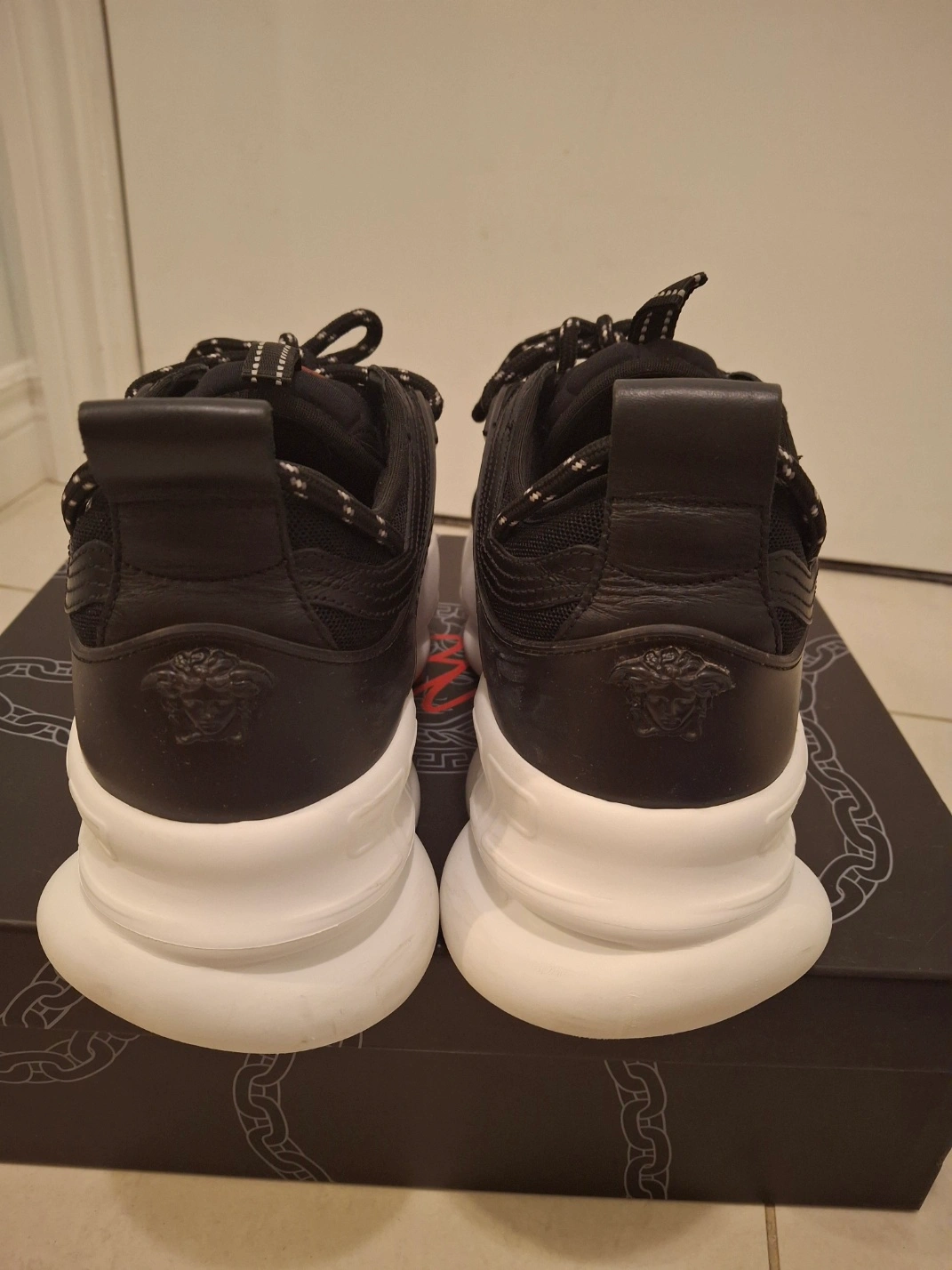 Pre-owned Versace Chain Reaction sneakers. Black colourway. Size 8. Comes in original box. Slight wear may be present.