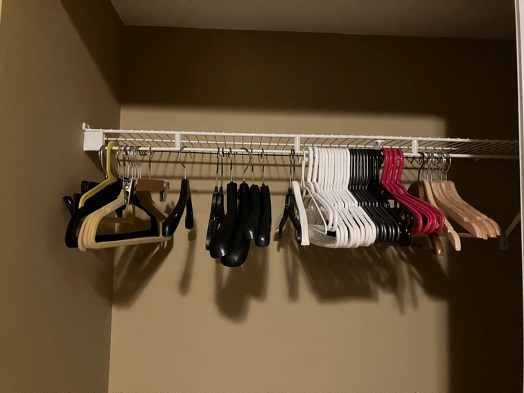 Variety of hangers. Includes velvet, plastic, and wooden hangers. Pick up only.