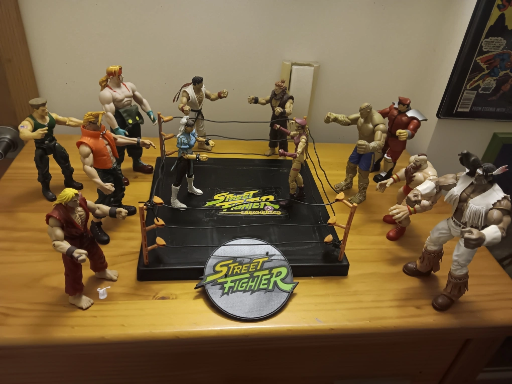 Street Fighter wrestling ring playset. Includes multiple figures. Great for collectors or fans.