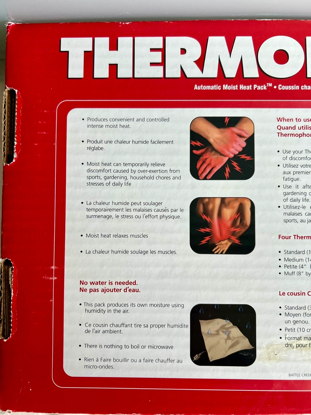 Having a Thermophore of your own, to use at the first sign of pain, muscle spasm or stiffness, can often let you treat a minor problem before it has a chance to worsen and require professional attention.