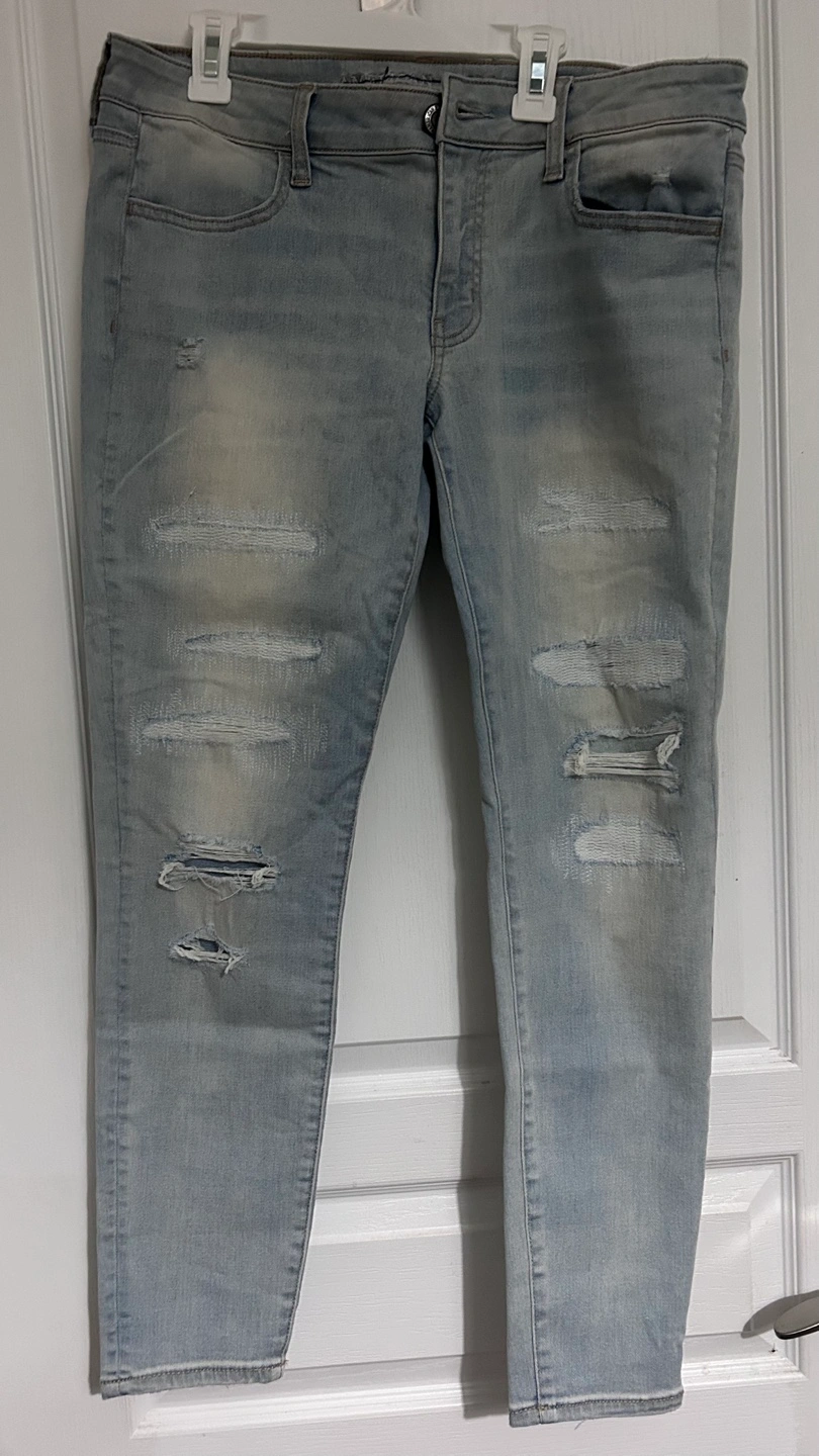 Light wash denim jeggings. Distressed detailing. Slim fit. Great condition.
