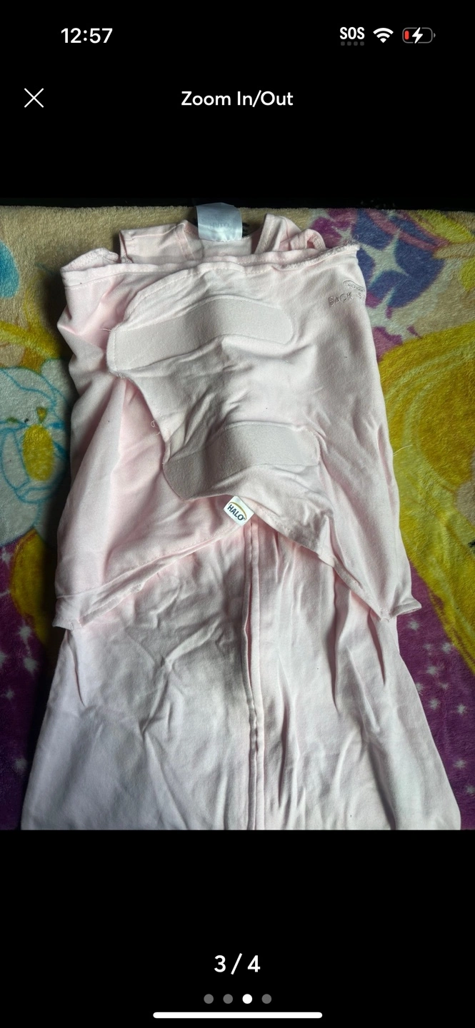 Five HALO sleep sacks and swaddles. Various colors and patterns. Great for baby. Sizes vary.$3 each