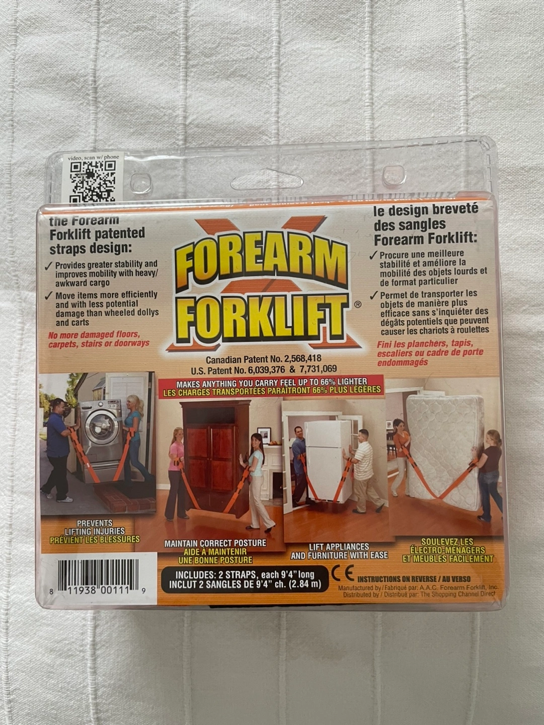 Orange moving straps. 9.4-ft x 3-in. Improves stability and reduces strain. Move heavy items more easily. Prevents lifting injuries. Canadian and US patents.