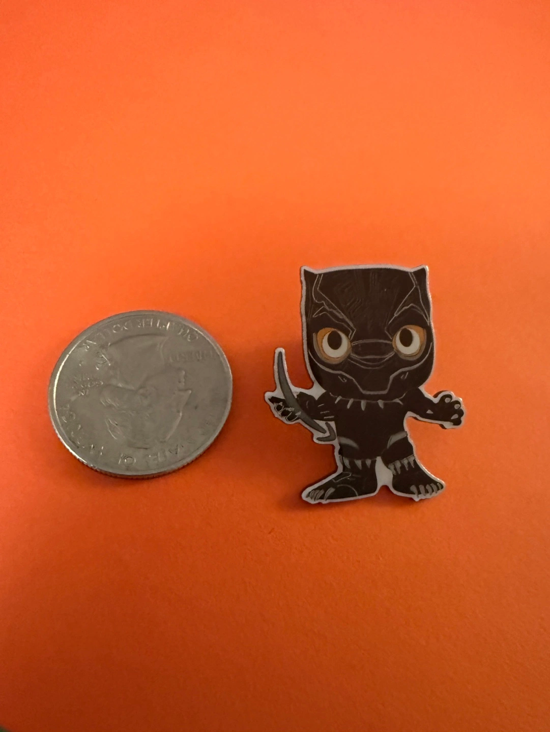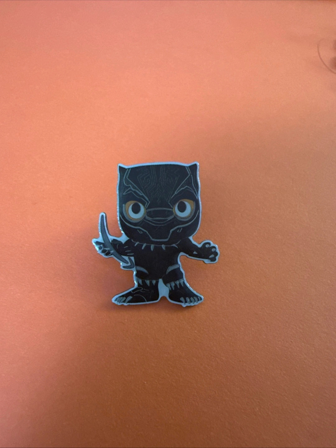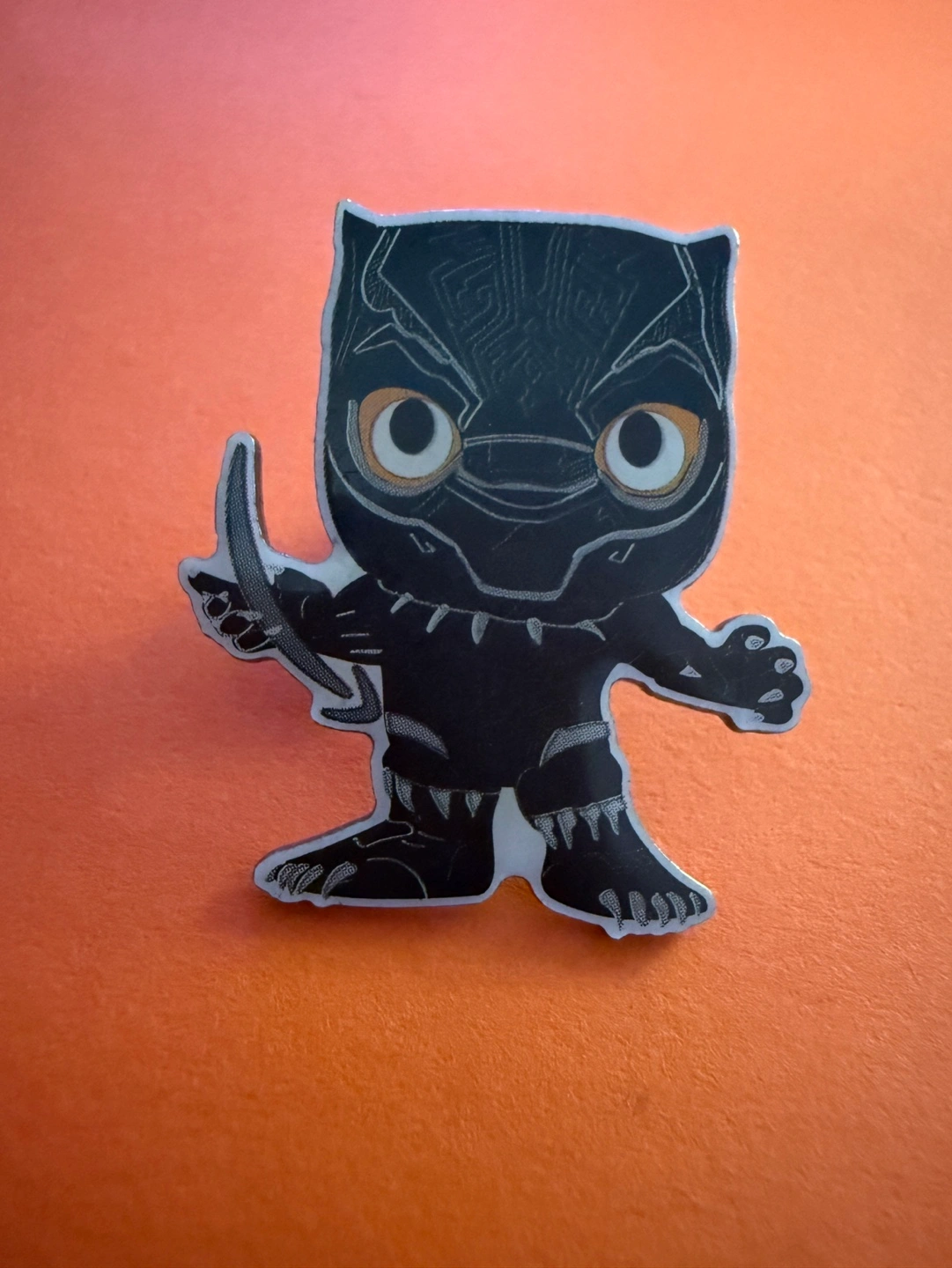 Cute Black Panther enamel pin. Collectible item. Great for bags, jackets, or hats. Metal pin with yellow clasp.