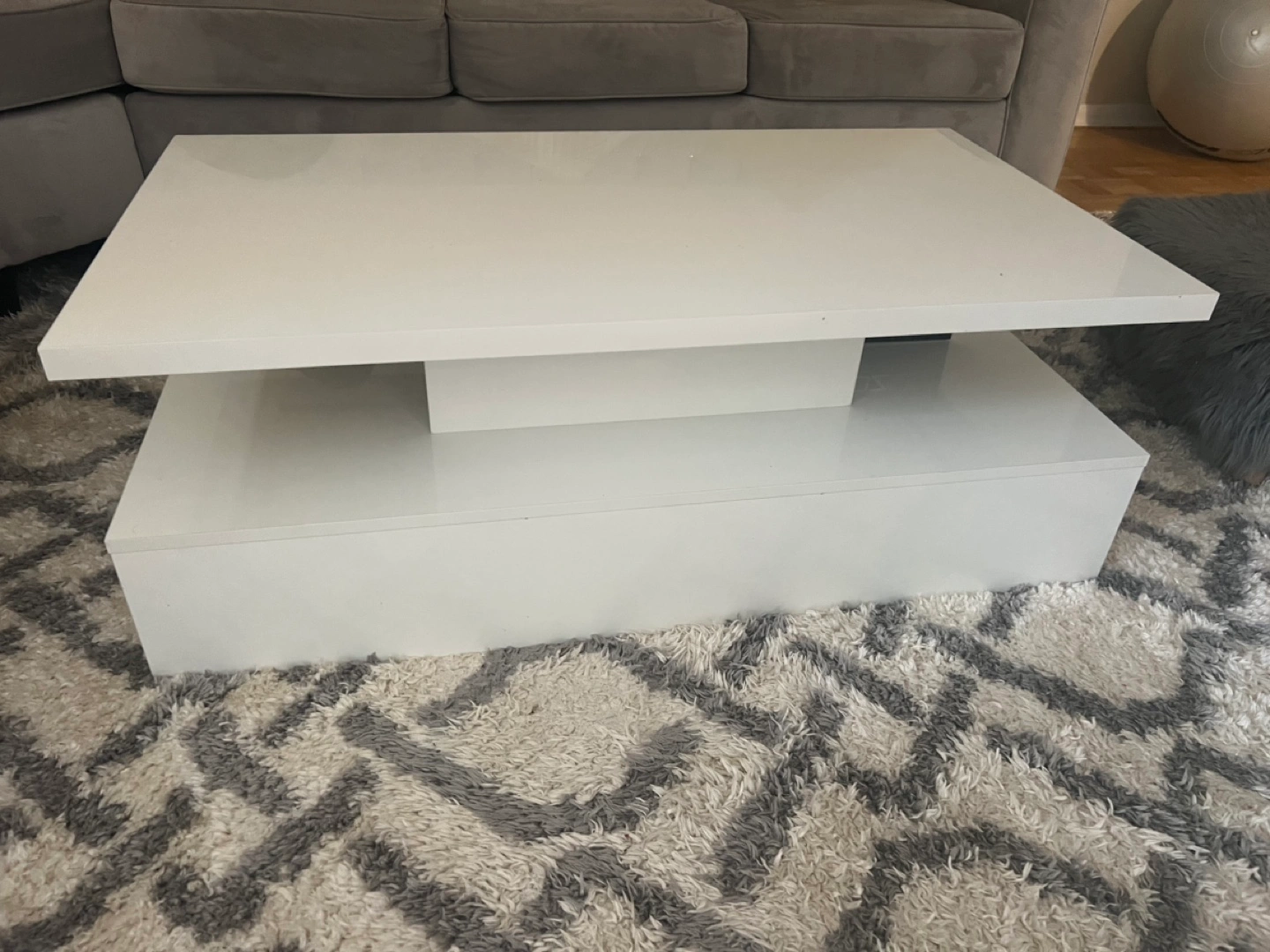 Modern White Coffee Table with Lower Shelf