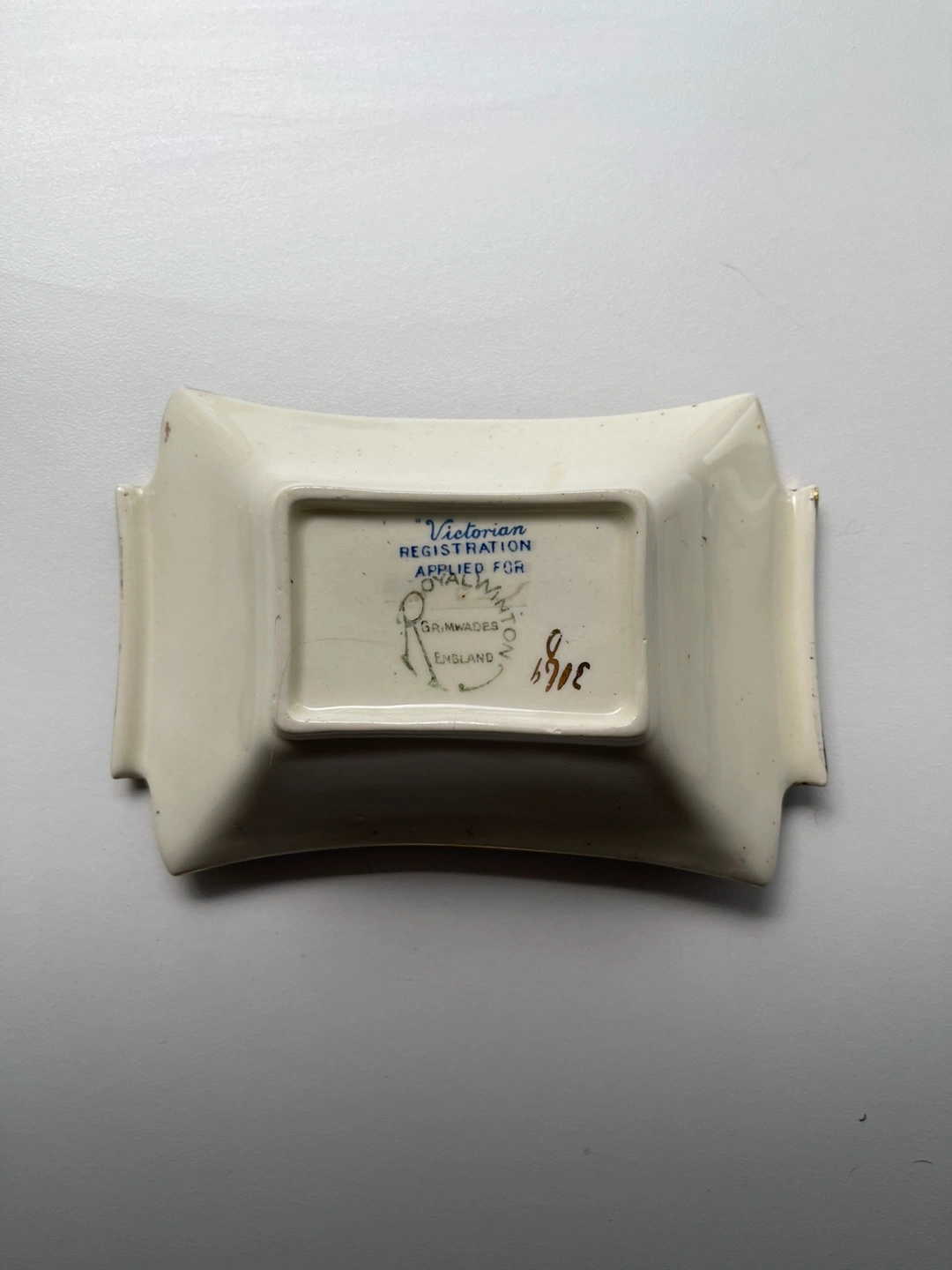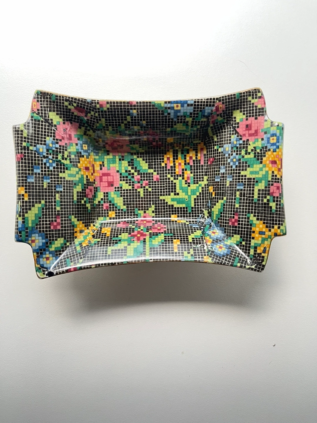 Small rectangular trinket bowl. Floral pattern. Made in England. Unique design. Collector's item.