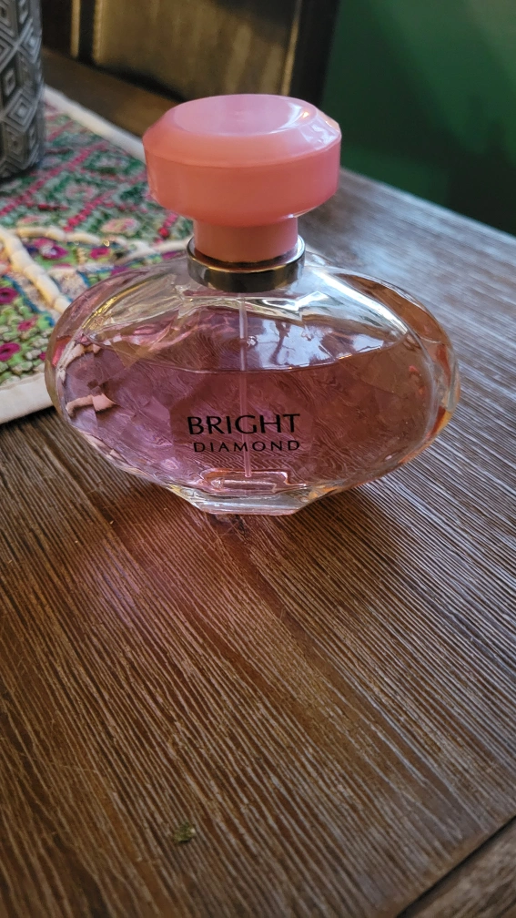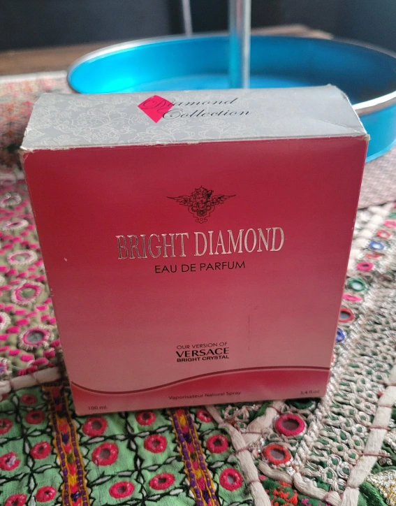 Bright Diamond Eau De Parfum, 100ml bottle. Replica version of Versace Bright Crystal not original genuine brand. Pretty pink glass bottle which is only 3/4 full with box