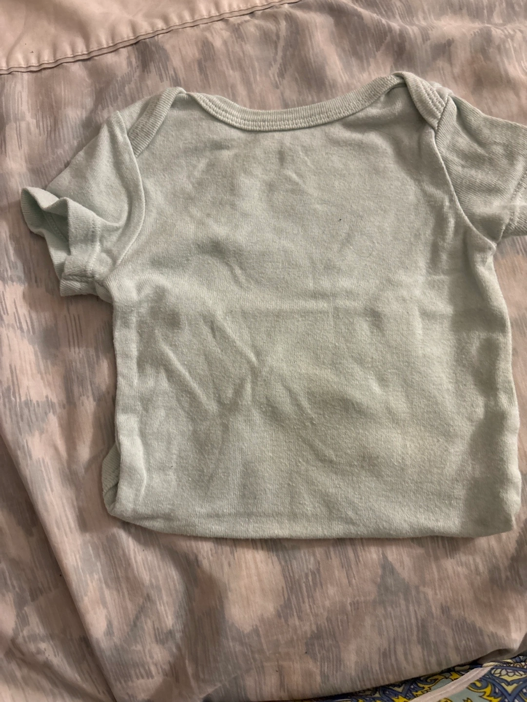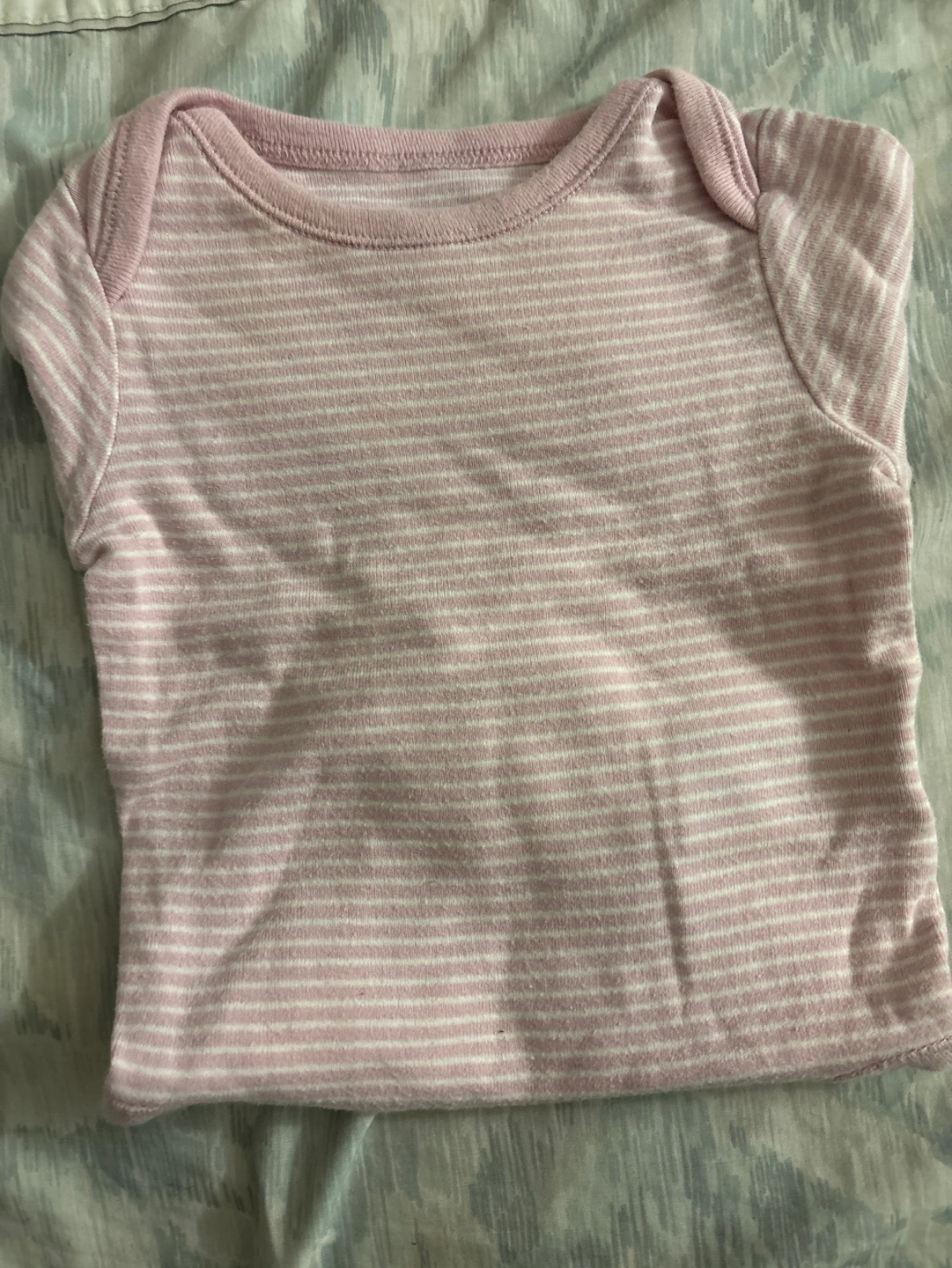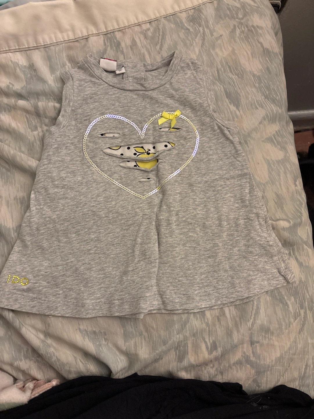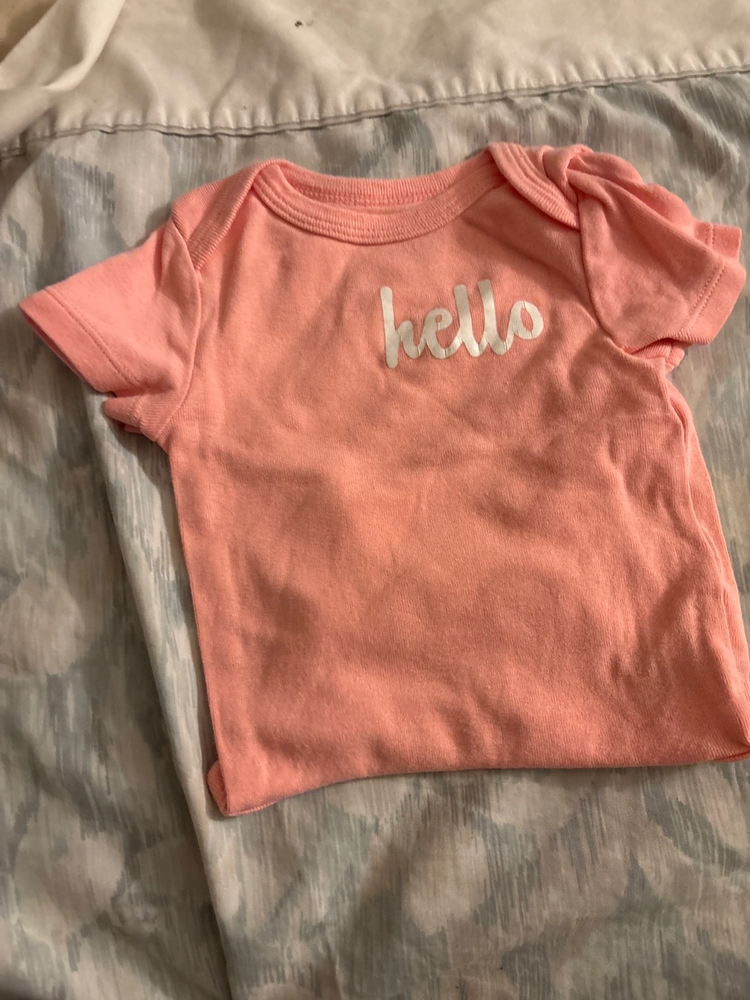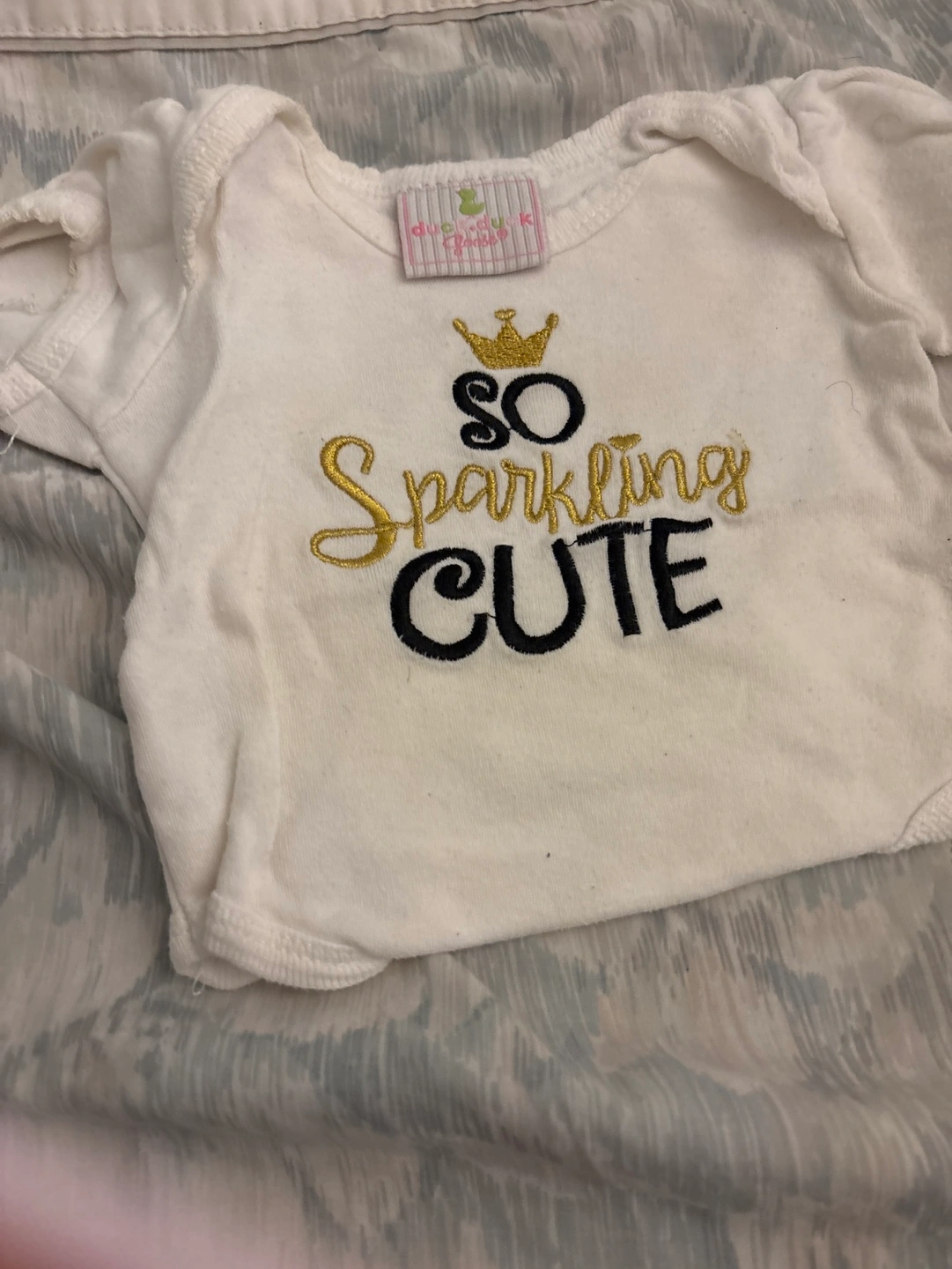 Adorable baby girl clothes bundle. Includes one white bodysuit with sparkly cute embroidery, one floral print bodysuit, one black floral print dress by Calvin Klein, one grey bodysuit with bird design, and one grey sleeveless top with a heart cutout. Perfect for a stylish little one.