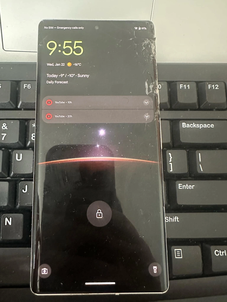 Issue: as you can see in the pics with cracked screen but still do the job and doesnt affect performance. Back glass is immaculate. Camera is superb! Battery life also last long.