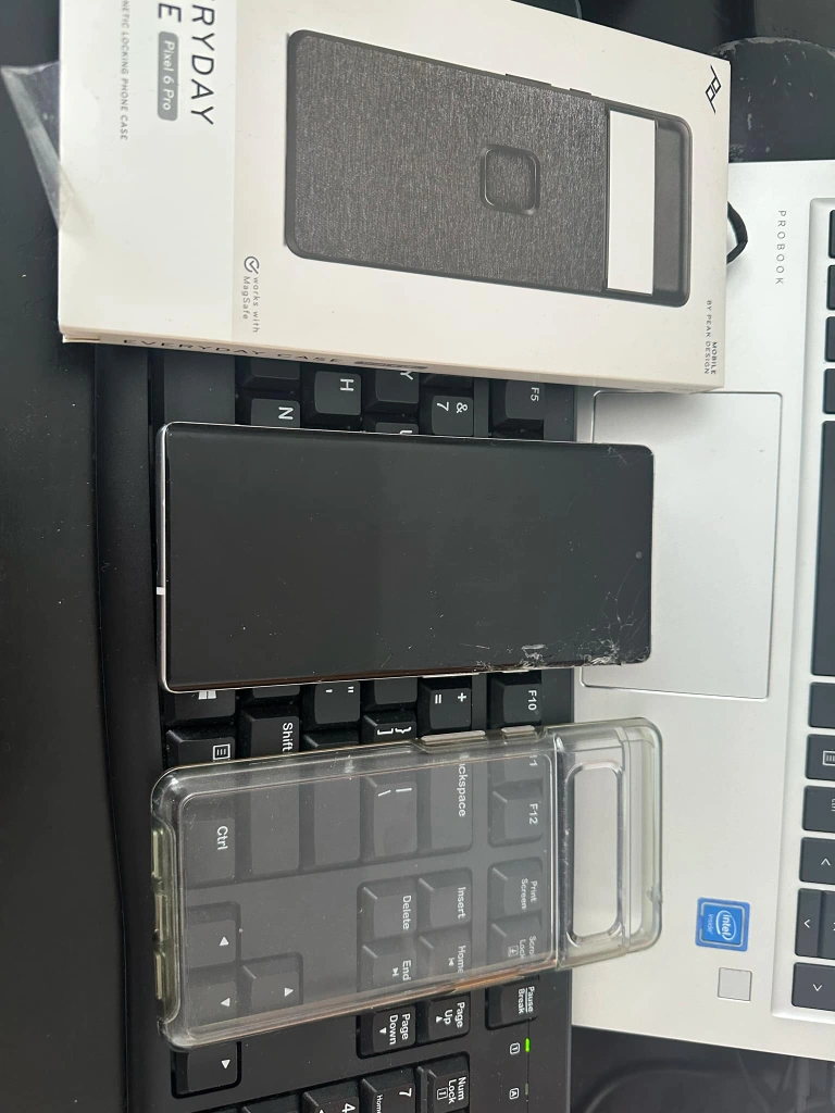 Included are phone itself one otterbox clear case and Peak Design Magnetic Everyday case.