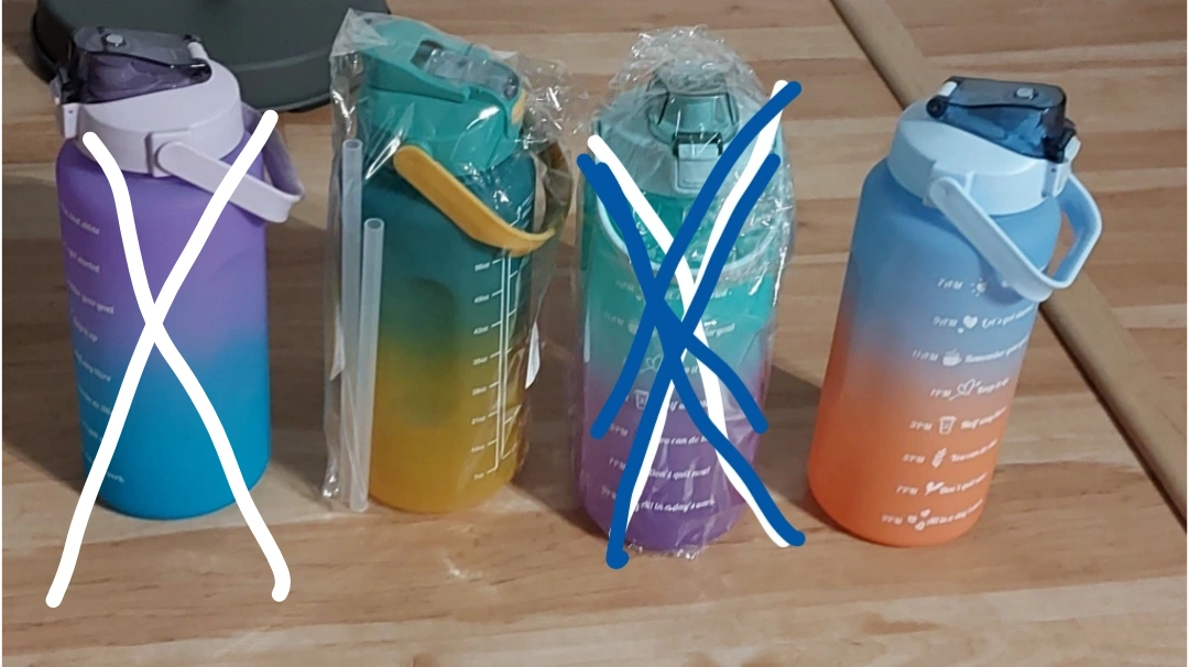 Each color has 3 bottles .BRAND NEW 3-Pack Inspirational water bottles with time marker - 64oz, 21oz, 8oz - BPA-Free - Round plastic bottles with straws, hand wash only for sports, fitness, camping, hiking & outdoor use