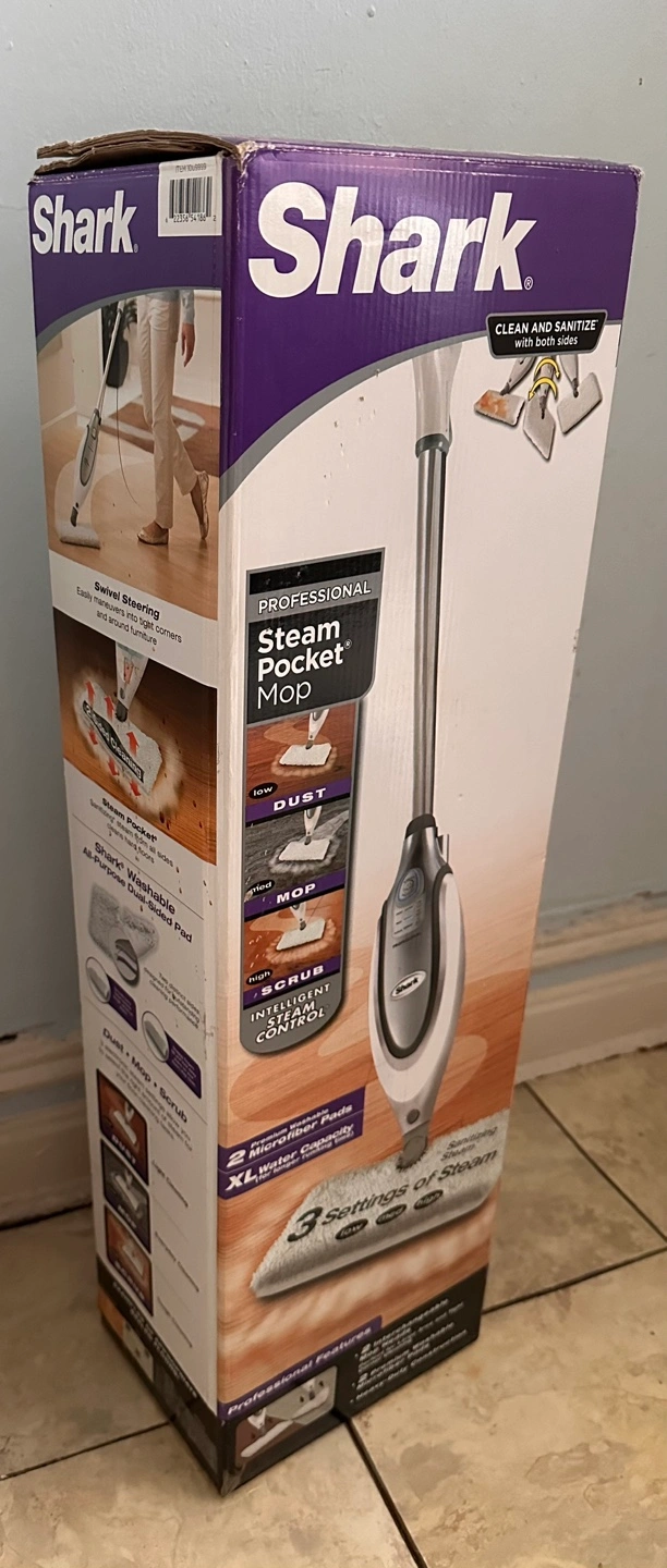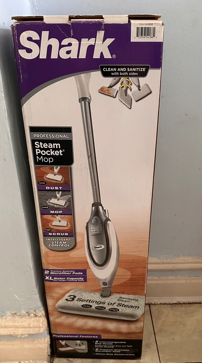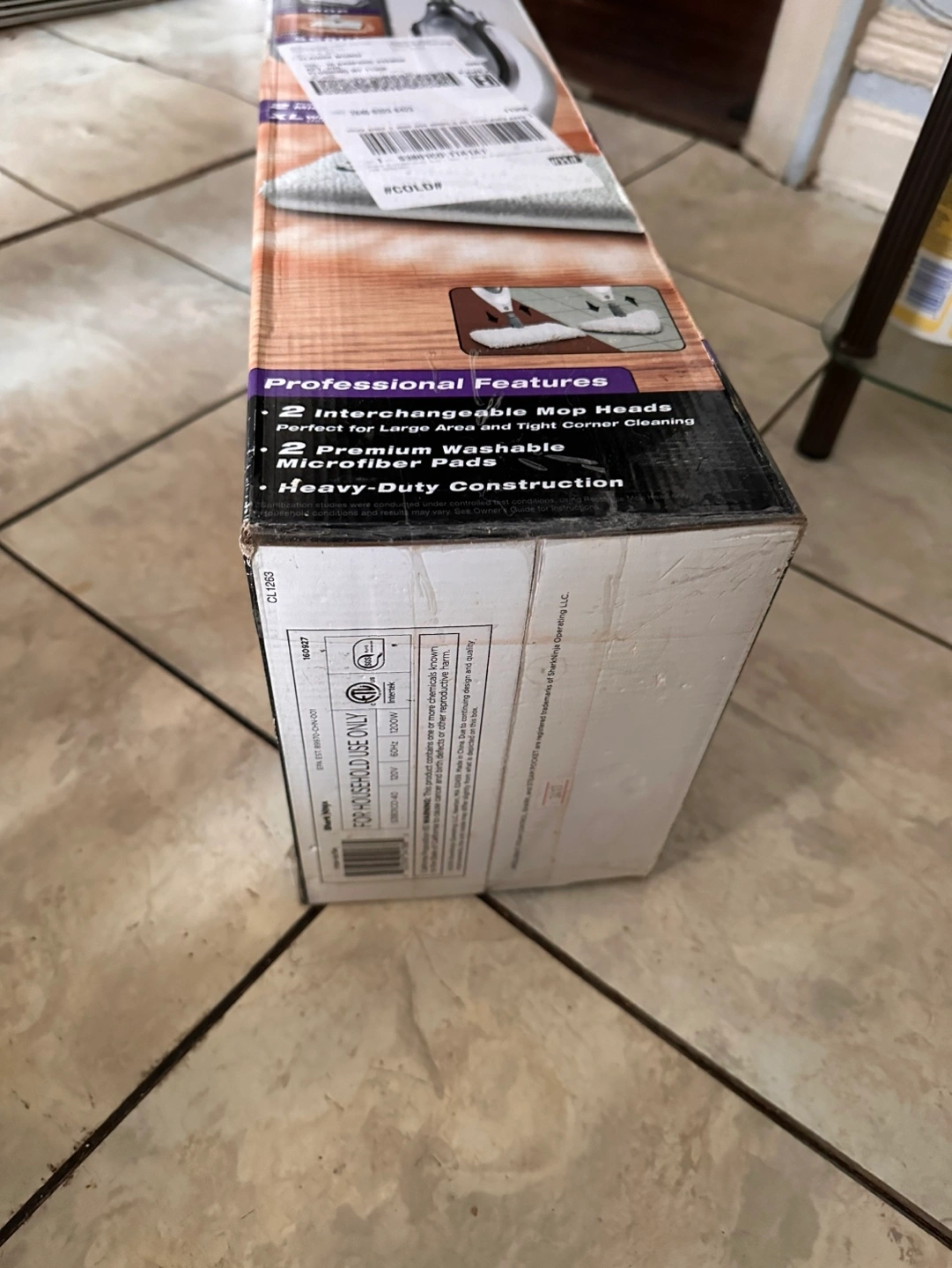 Steam mop, 3 settings: dust, mop, scrub. Sanitizing steam. XL water capacity. 2 premium washable microfiber pads. Swivel steering. Great for hardwood, tile, marble, and stone floors.
