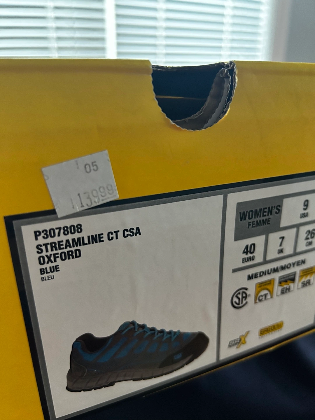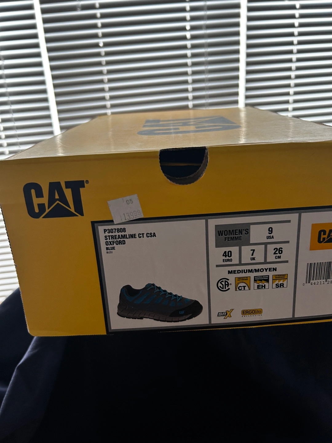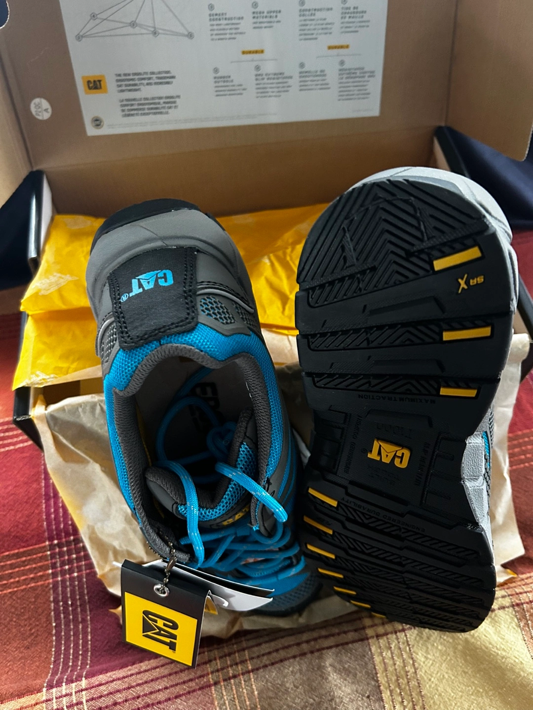 New Caterpillar ErgoLite collection safety shoes. Women's size 9. Blue and grey. CSA approved. In original box.