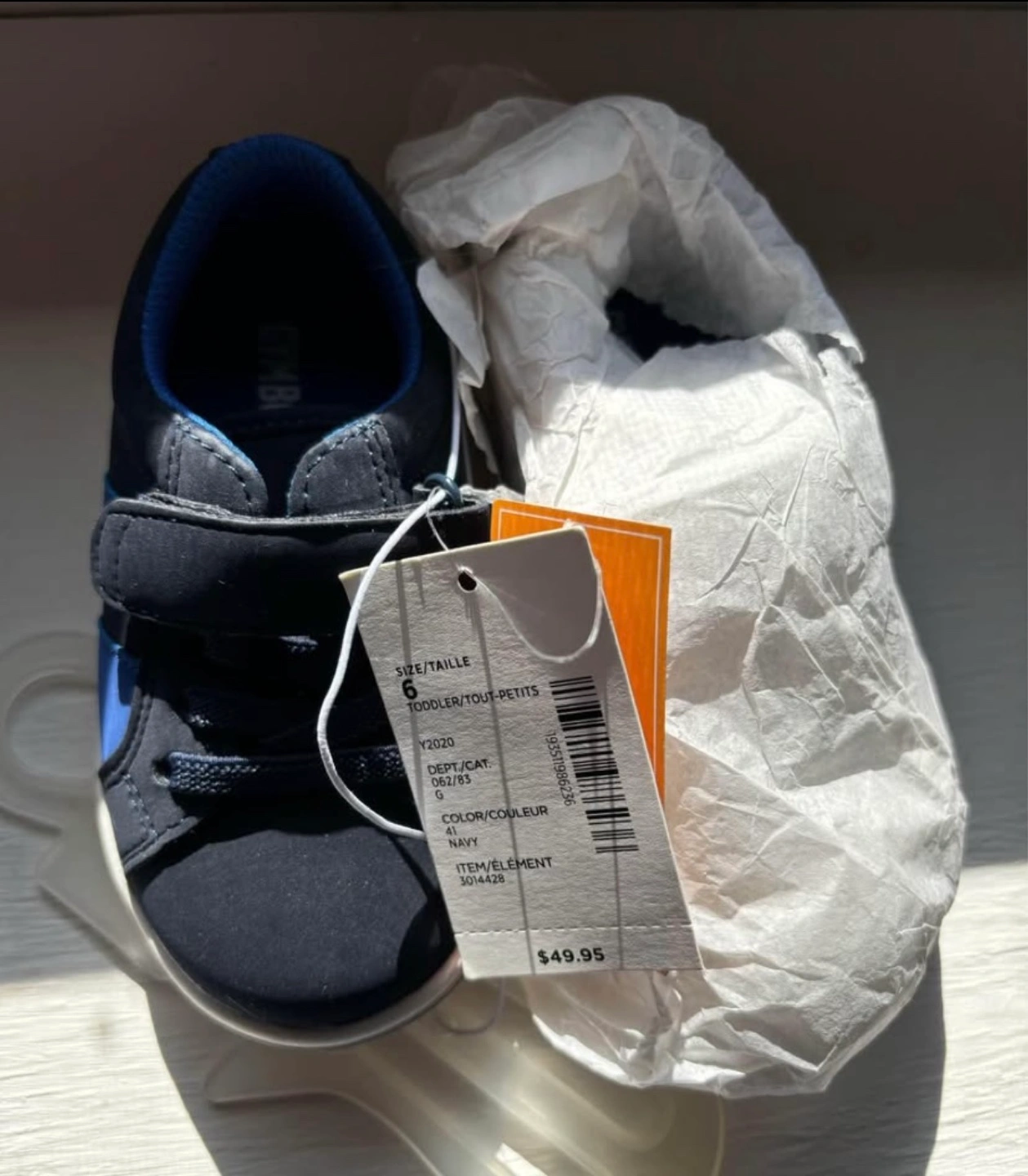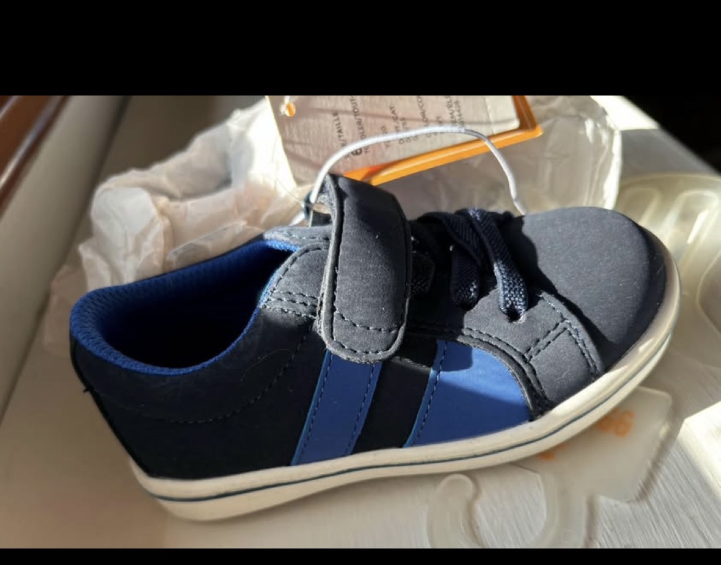 New toddler boy's shoes. Navy blue with blue accents. Velcro and lace closure. Size 6. ****Pick up at 1795 St.Clair West.Cash only.