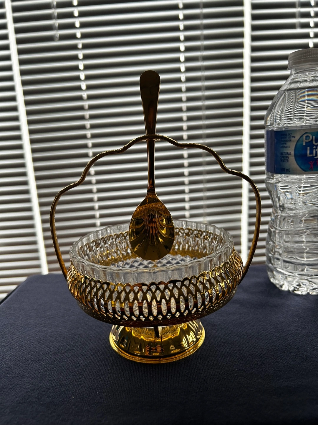 Vintage Crystal and Gold Sugar Bowl with Spoon