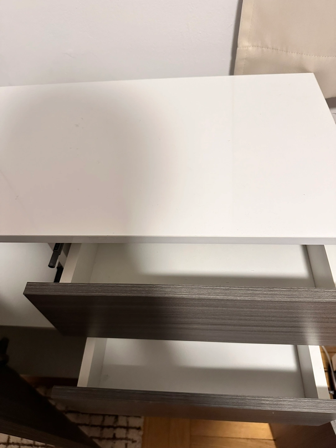 * second drawer push to open magnet is not working properly. you’d have to open the first drawer to pull the second drawer or open the door below to open it.