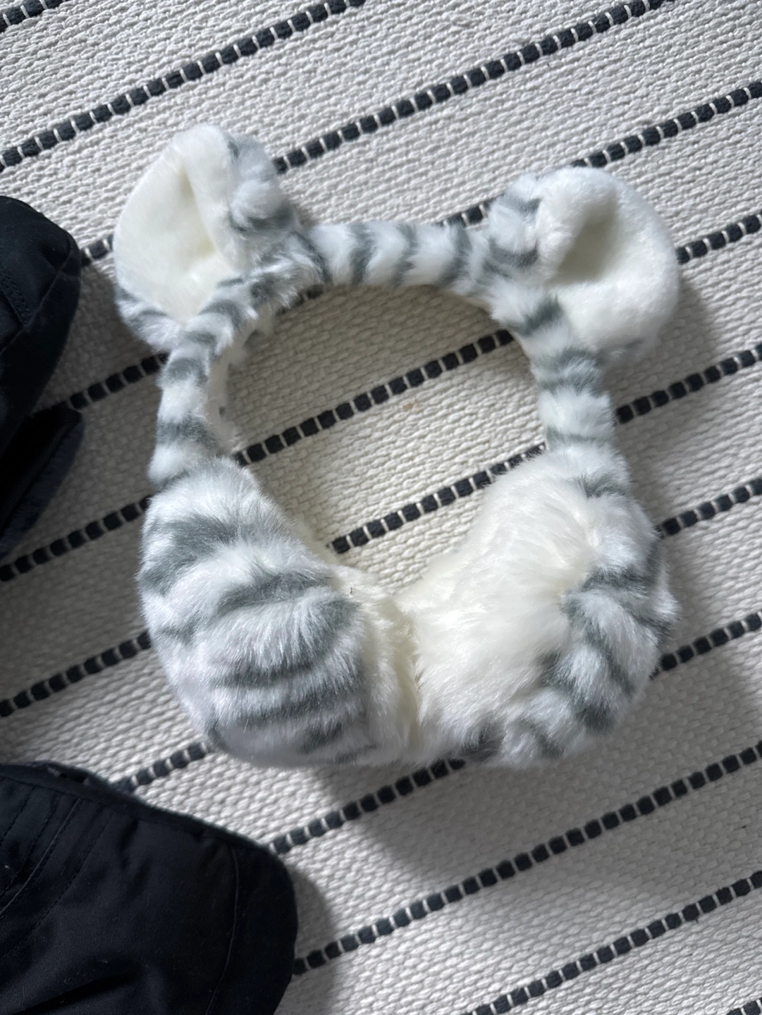 Adorable kids' (fits adults as well) earmuffs. Features a cute zebra print design and soft, fluffy material. Perfect for keeping little ears warm during the colder months. Wore once only.