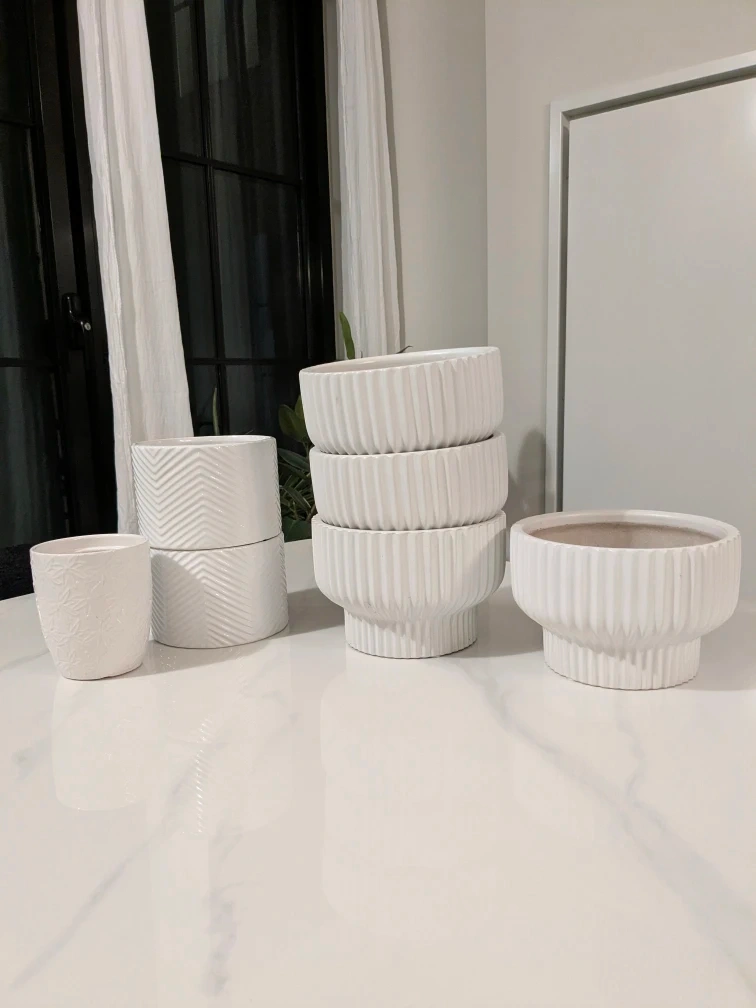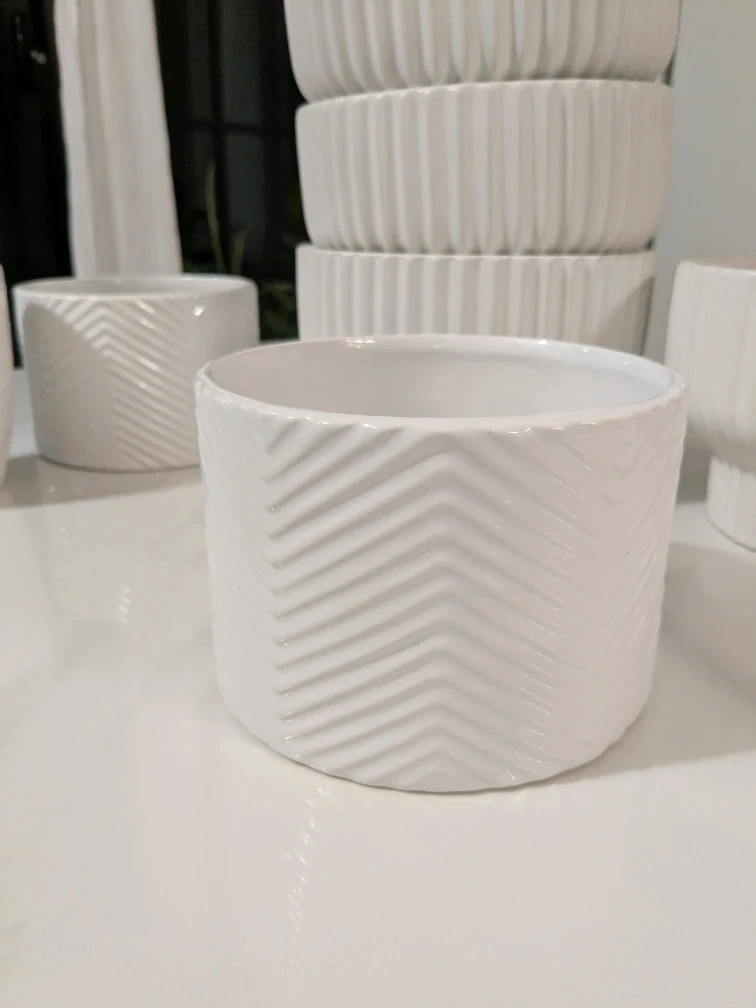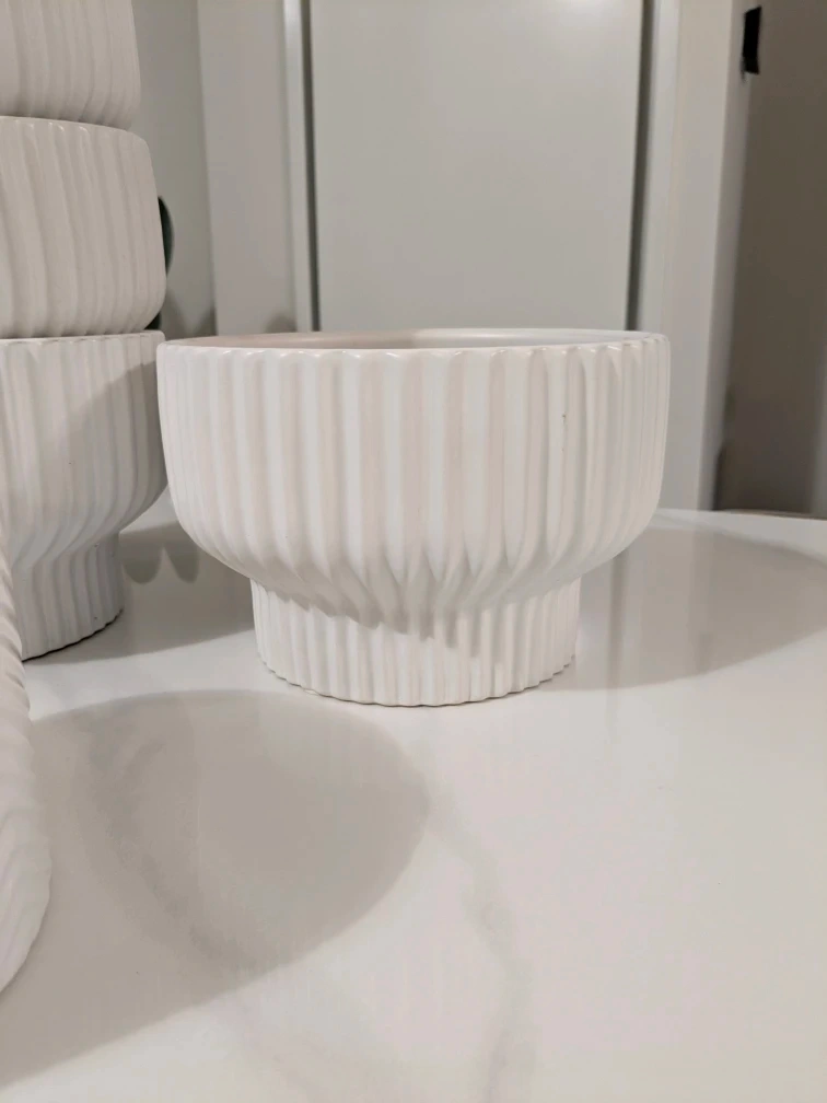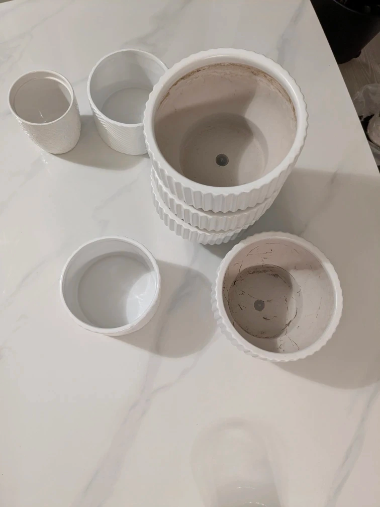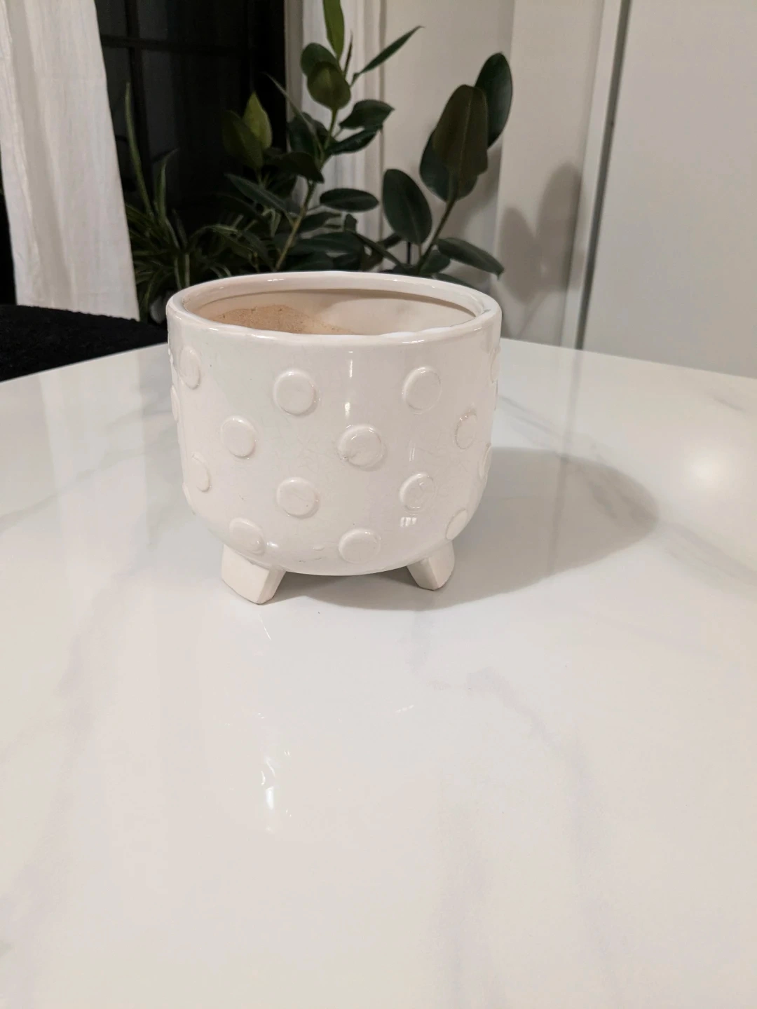 One ceramic pot with legs (4" cracked on the side... inside of pot is not cracked so no water leakage)