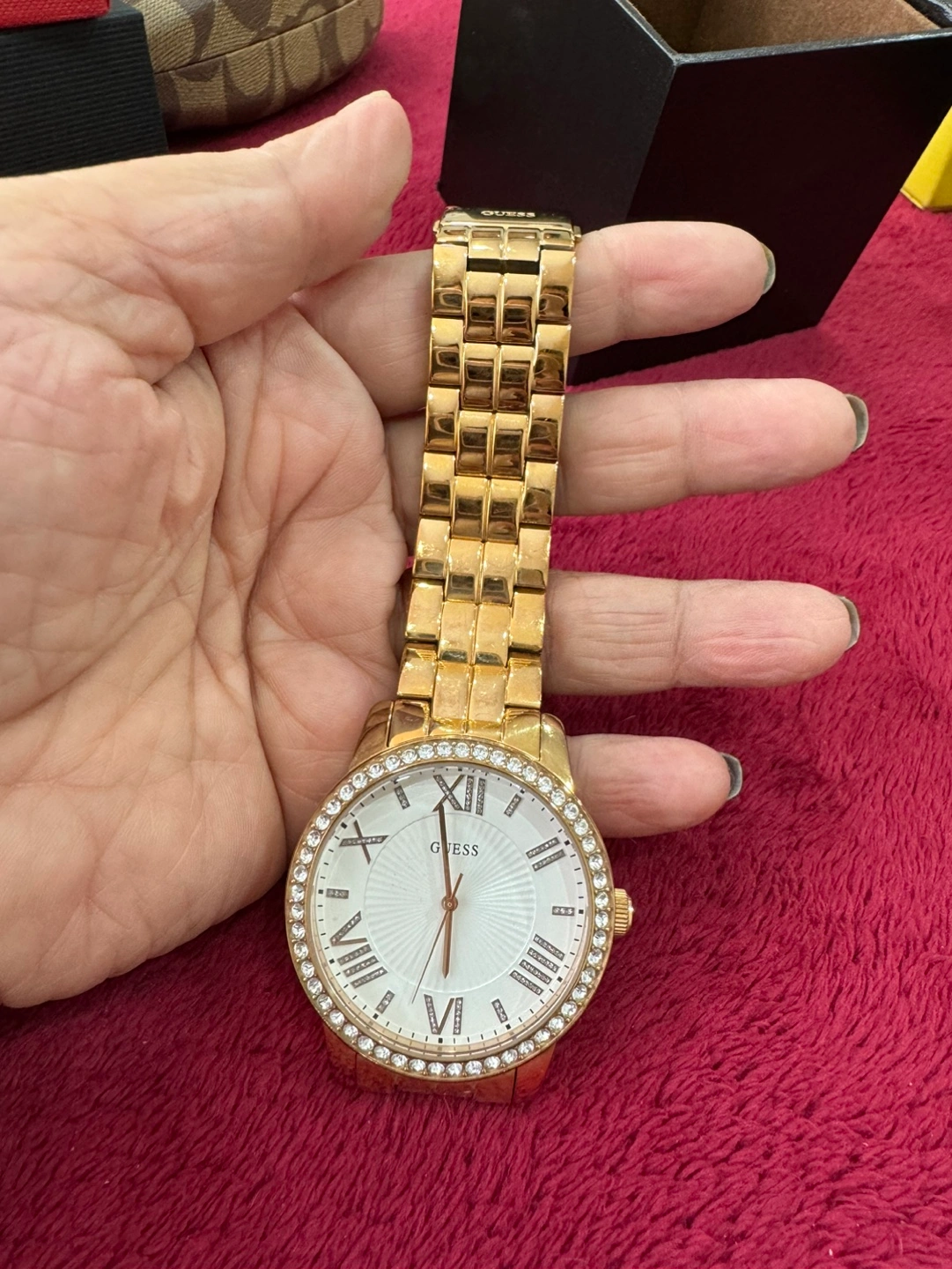 GUESS Women's Rose Gold Watch with Crystals