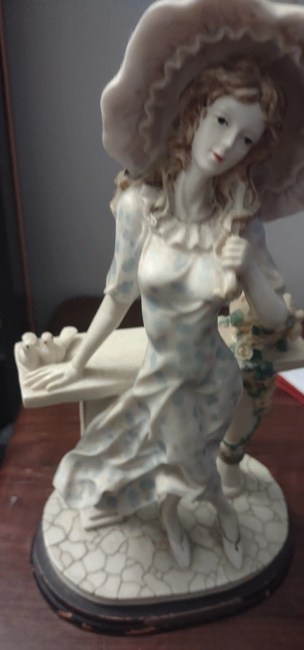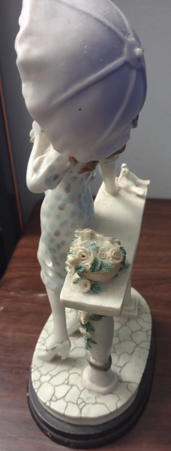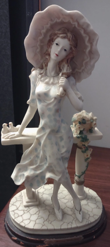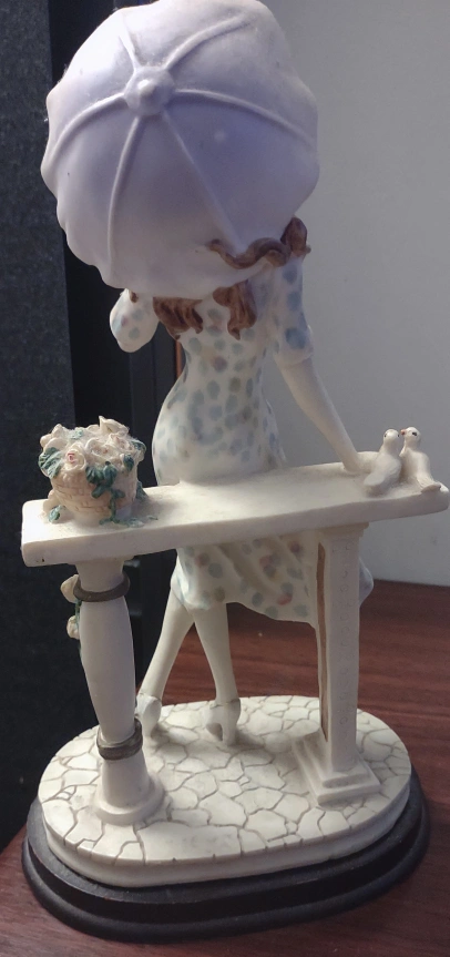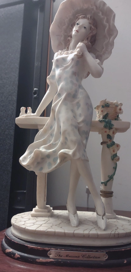 Elegant figurine, woman in a dress holding a parasol. Features birds and flowers. Part of The Messina Collection 1993