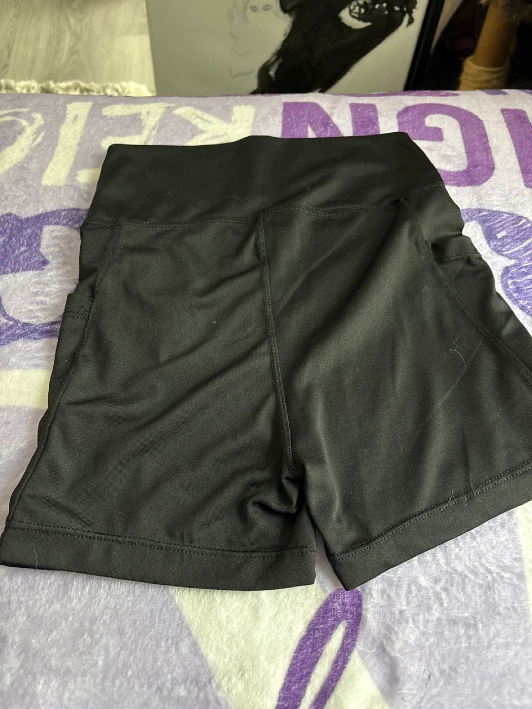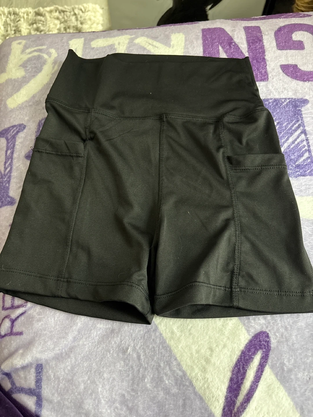 These black athletic shorts are designed for comfort and convenience. They feature side pockets perfect for holding your phone or keys during workouts. The stretchy fabric ensures a good fit for active use.
