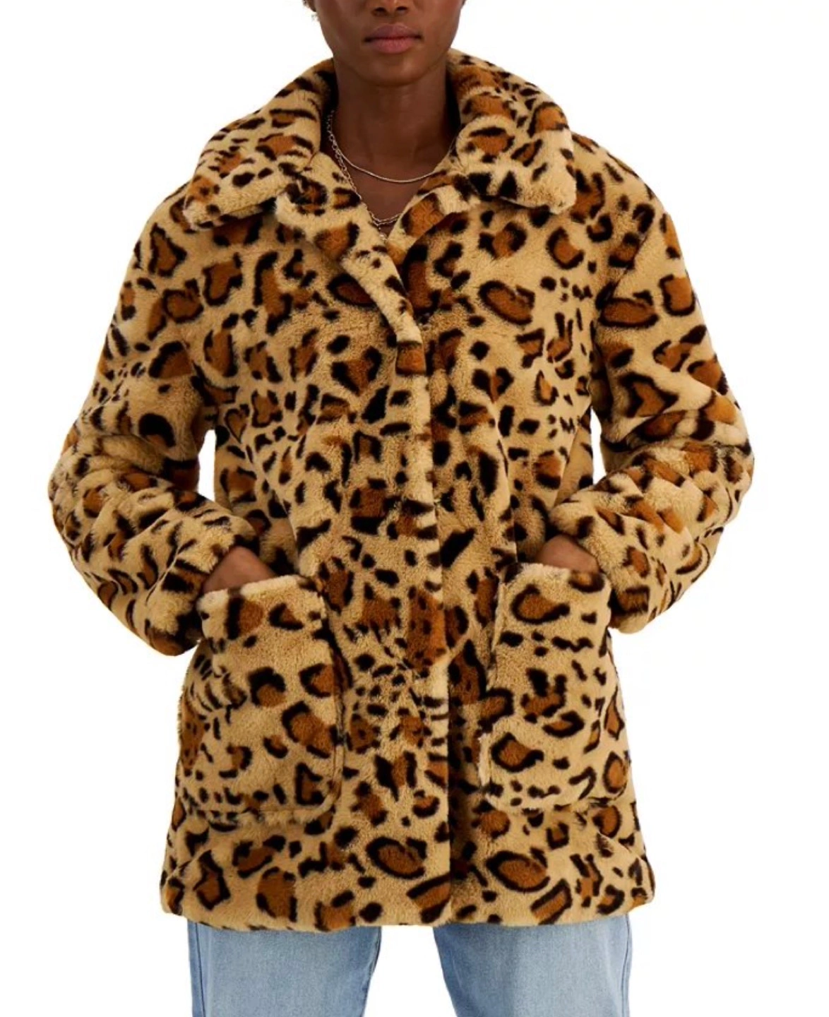 Take a walk on the wild side in this fierce leopard-print coat designed entirely in faux fur. Brand new, never been worn (tags still attached). Size medium, from Macy's. - Approx. 30-1/2" long from center back to hem - Notched collar; front button closures - Two deep pockets at hips - Lined - Shell, lining: polyester - Machine washable Regular $120