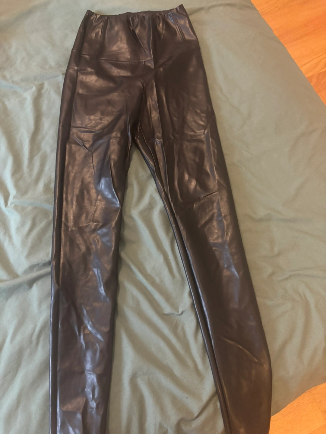 306Black faux leather leggings. Size small. High-waisted. Excellent condition.