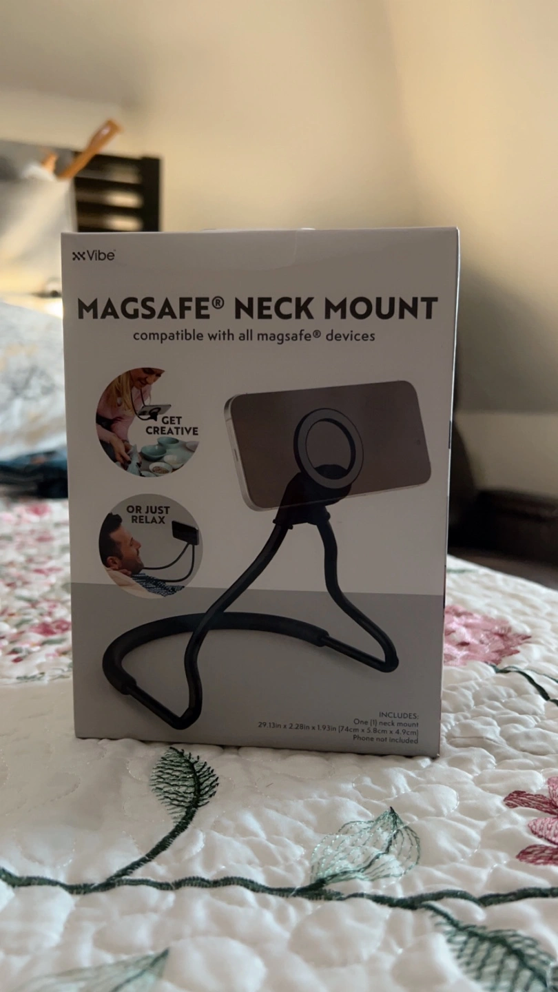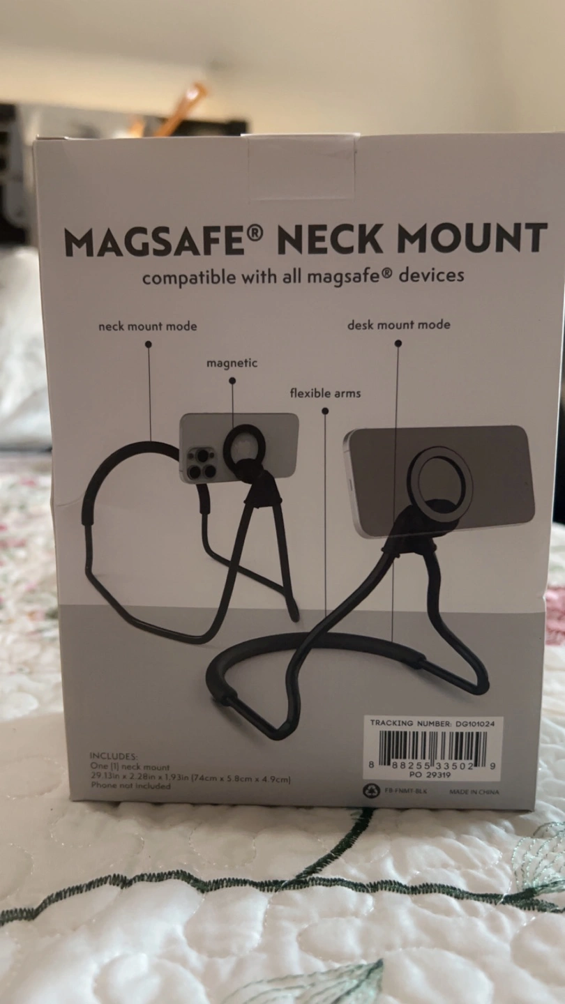 New MagSafe neck mount. Flexible arms. Magnetic attachment. Compatible with all MagSafe devices. Use as a neck mount or desk mount. Includes phone mount and flexible stand.