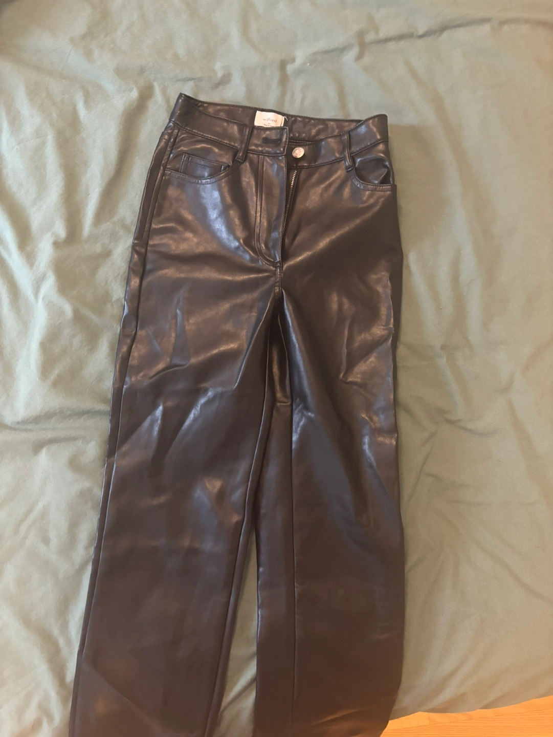 306Black faux leather pants. High waisted, straight leg. Zipper fly. Excellent condition.