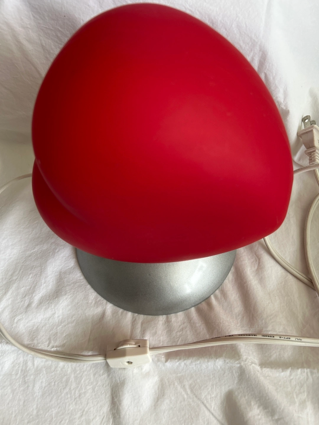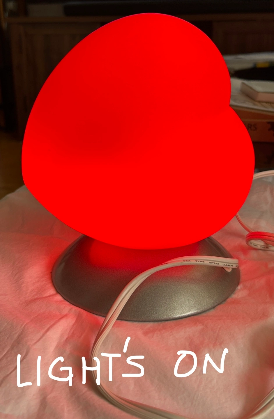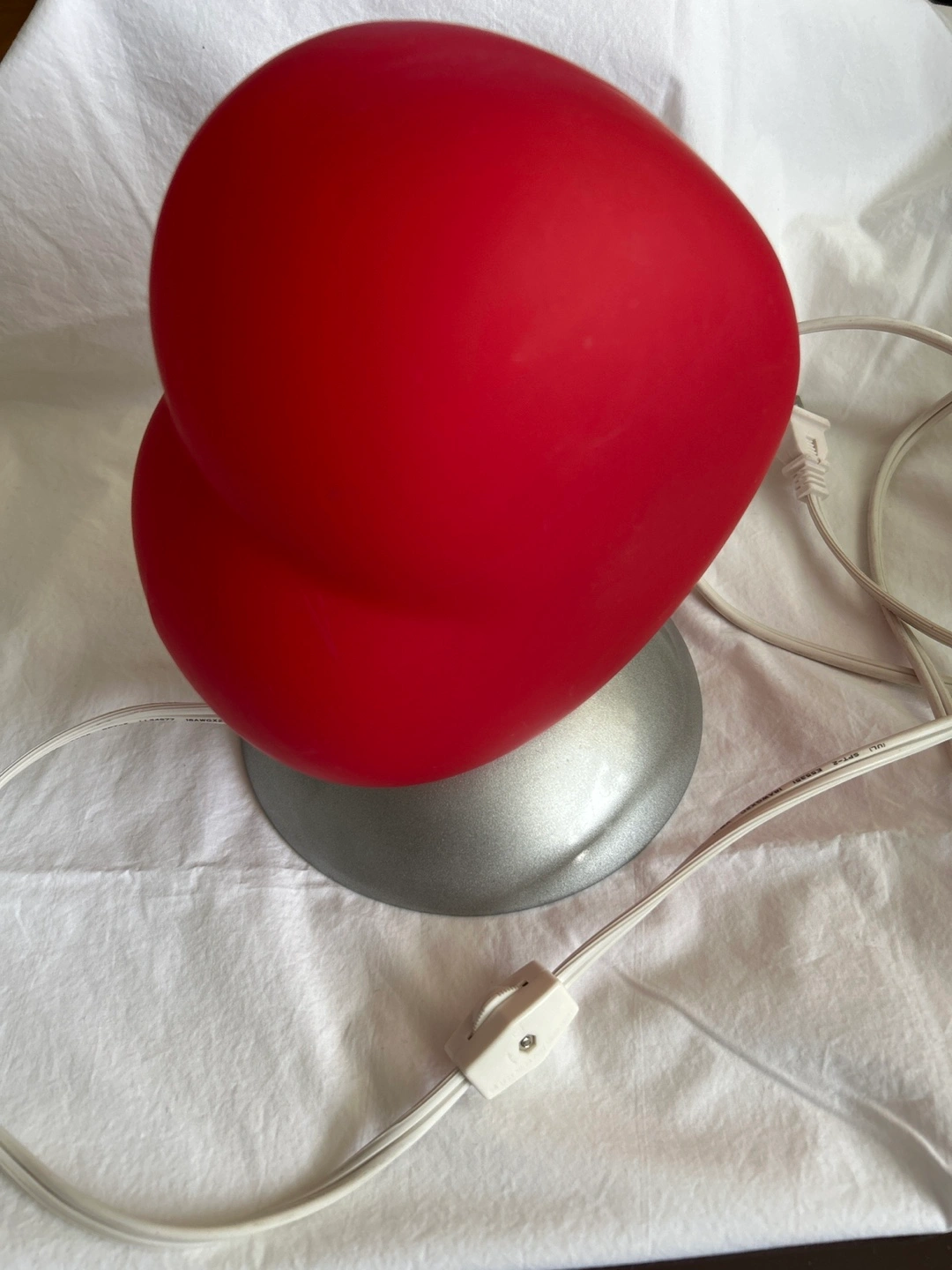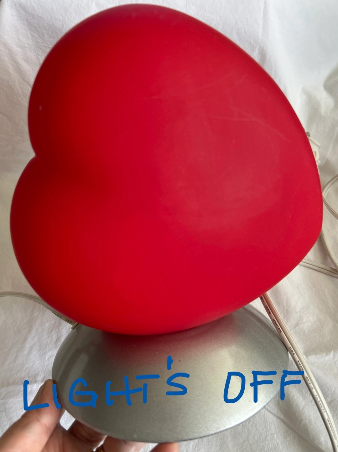 1000+Red heart-shaped table lamp. Perfect for Valentine’s Day or any occasions. Silver-coloured base. Inline on/off switch. Very nice red glow light when switched on. In good condition. Made in Taiwan. Smoke/Pet free home Cash and pick up please