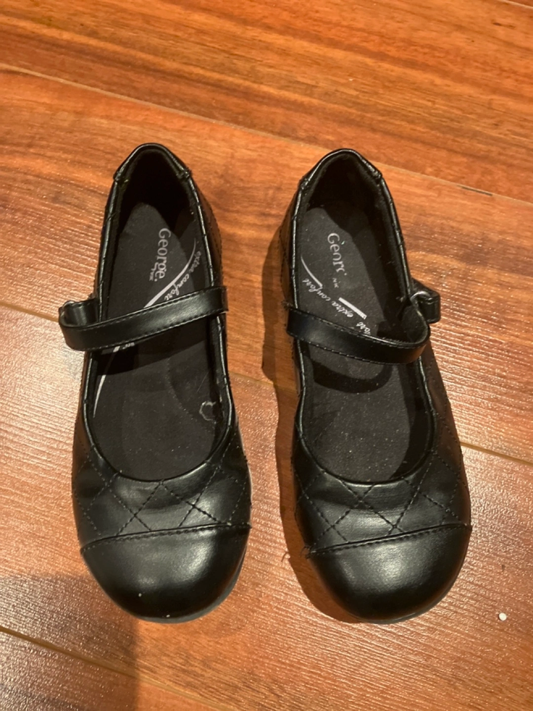 Black quilted Mary Jane shoes. Size 12. Velcro strap closure. Good for school or special occasions. Extra comfort.