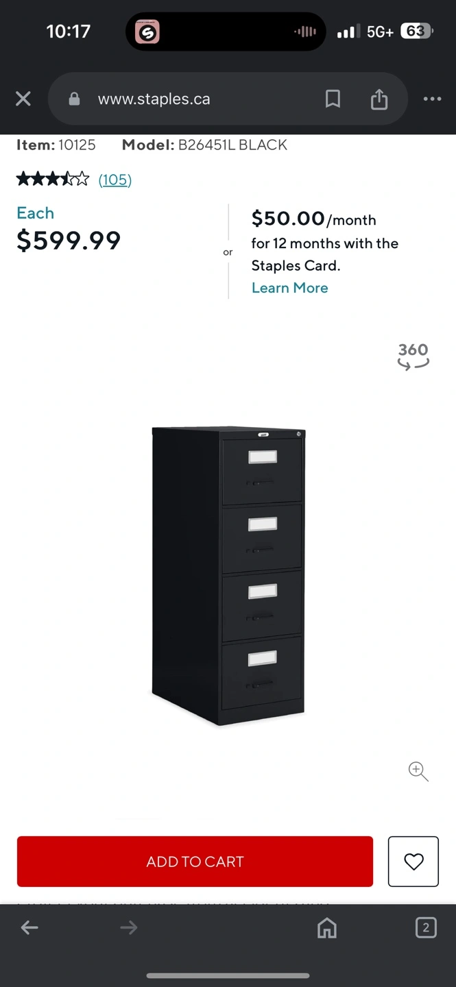 Two filing cabinets for sale. Purchased from Staples for $599 plus taxes each.
