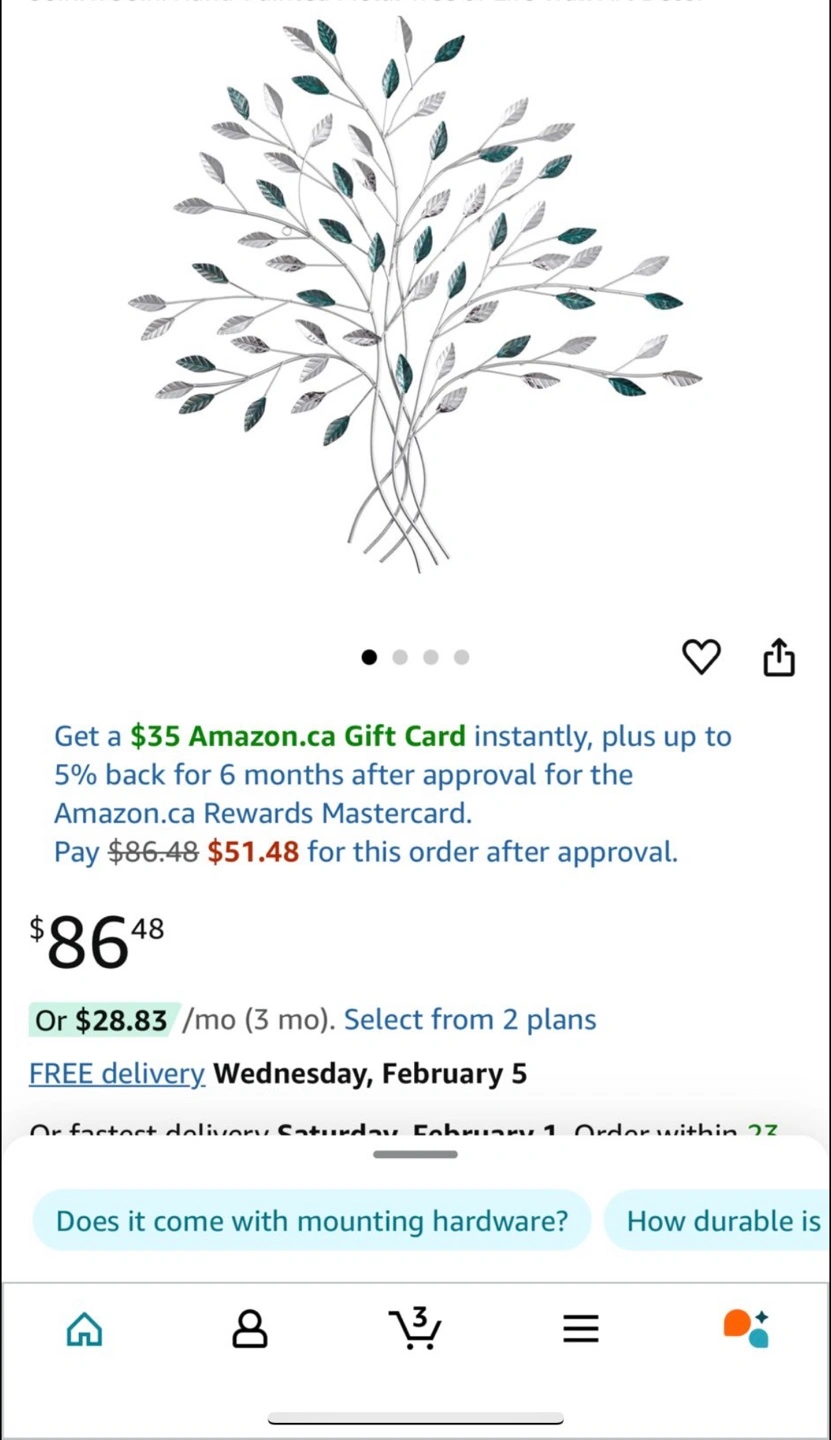 Elegant metal wall art. Features delicate branches and iridescent stone leaves. Adds a touch of nature to any room. Good condition and sturdy. Slight rust on the back but can be painted over. Similar option listed for 86 per piece.