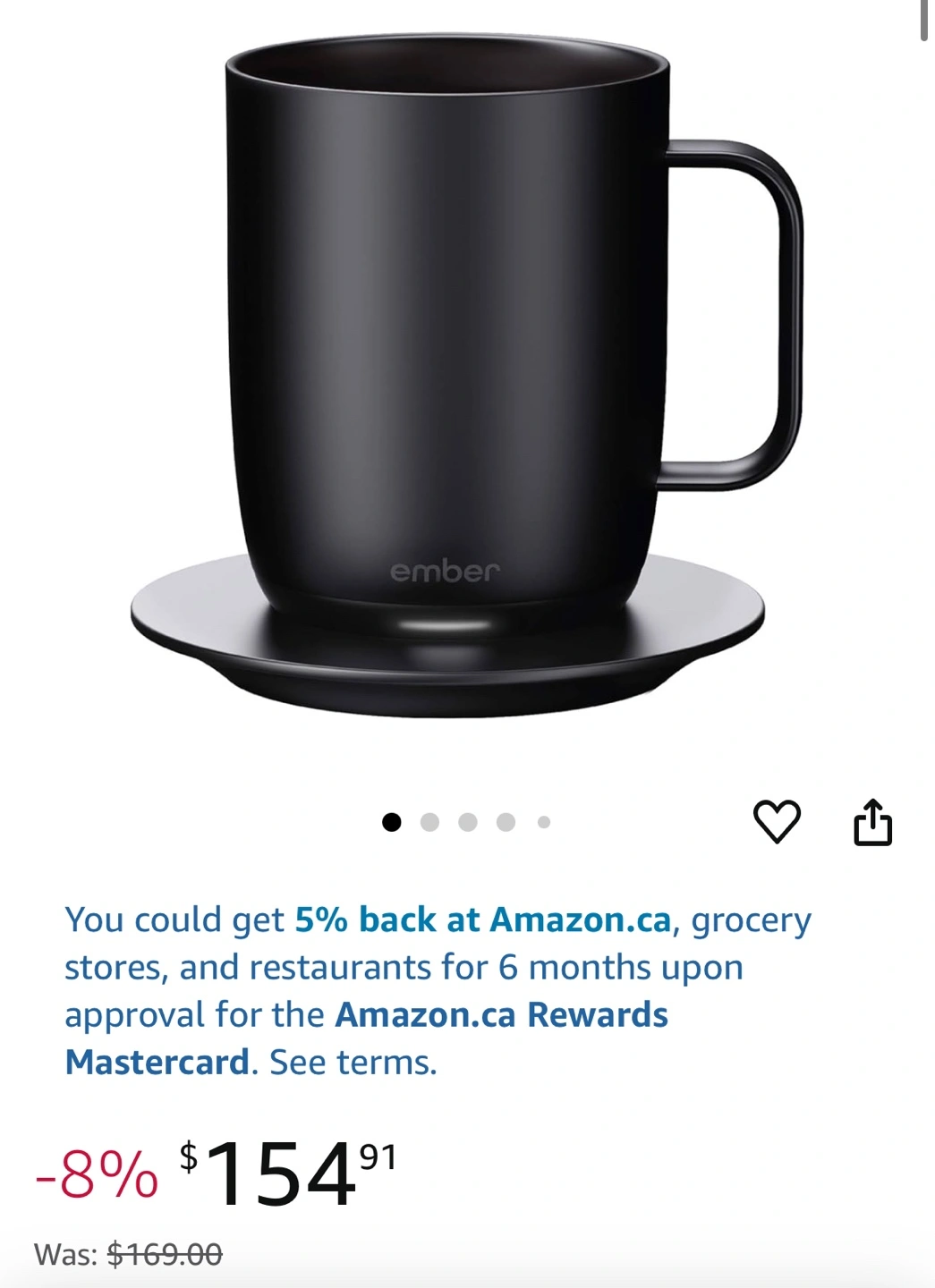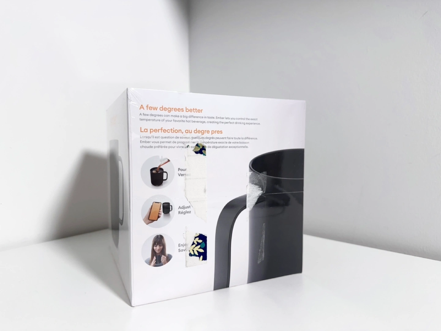 BRAND NEW, never been opened. This is the third Ember mug that I’ve received as a gift. I really don’t need more for my home. I can’t remove the residue of tape on the plastic wrapping outside. Smart mug maintains your preferred temperature. Includes charging coaster. Control temperature via smartphone app.