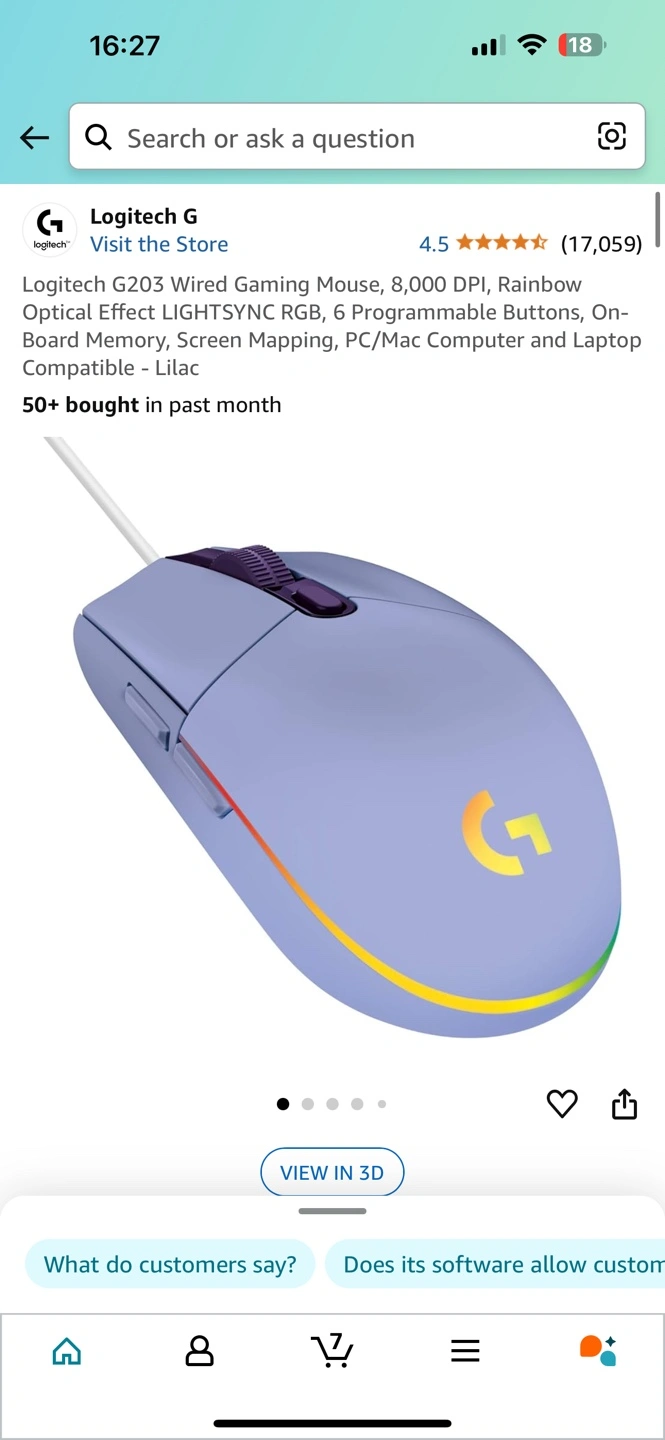 Wired gaming mouse. Lilac colour. 8000 DPI. 6 programmable buttons. On-board memory. PC/Mac compatible. Used for about a year. Works great. Has RGB programable.