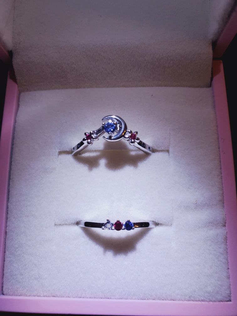 Beautiful ring set. Features two rings, one with a crescent moon and small stones, the other with three small stones. Sterling silver .925 with czs. Inspired by Lord Sesshomaru.