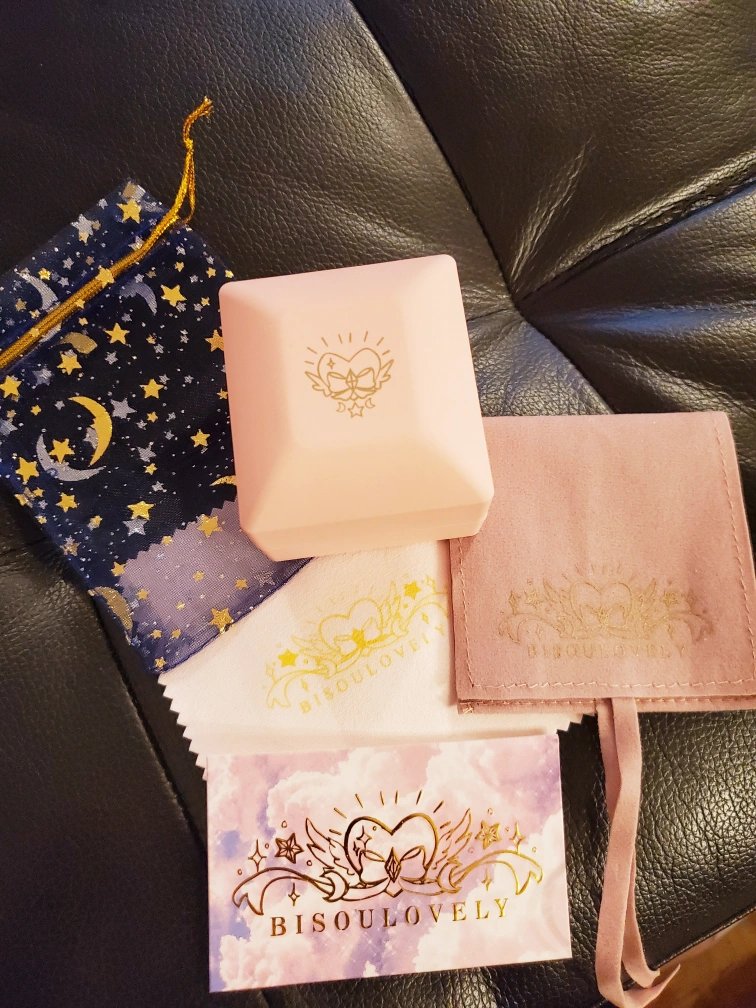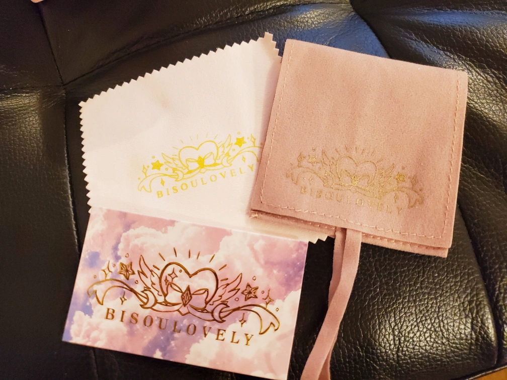 Comes in a pink box with a cleaning cloth and pouch.