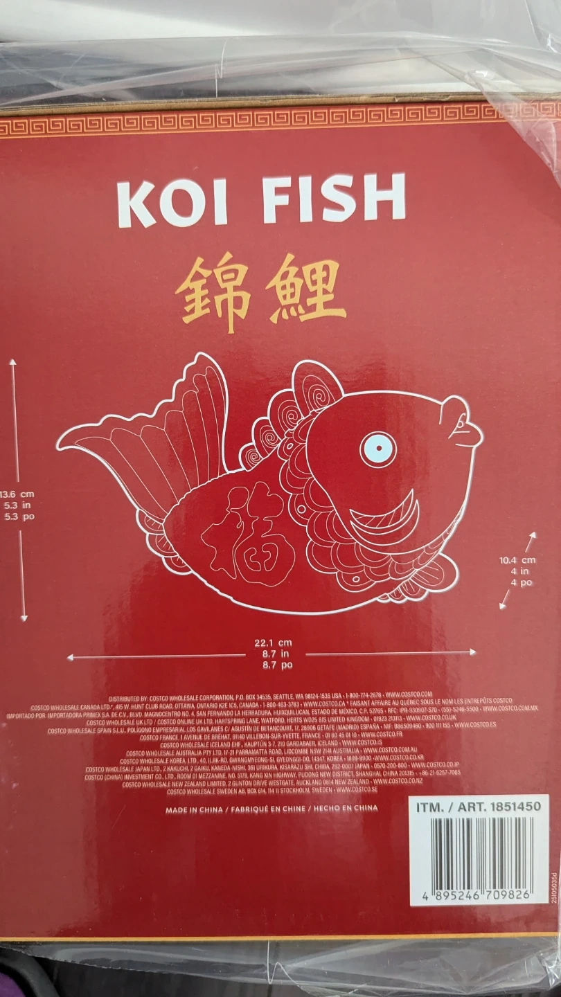 This is a decorative koi fish item. It measures 22.1 cm by 8.7 cm by 10.4 cm.