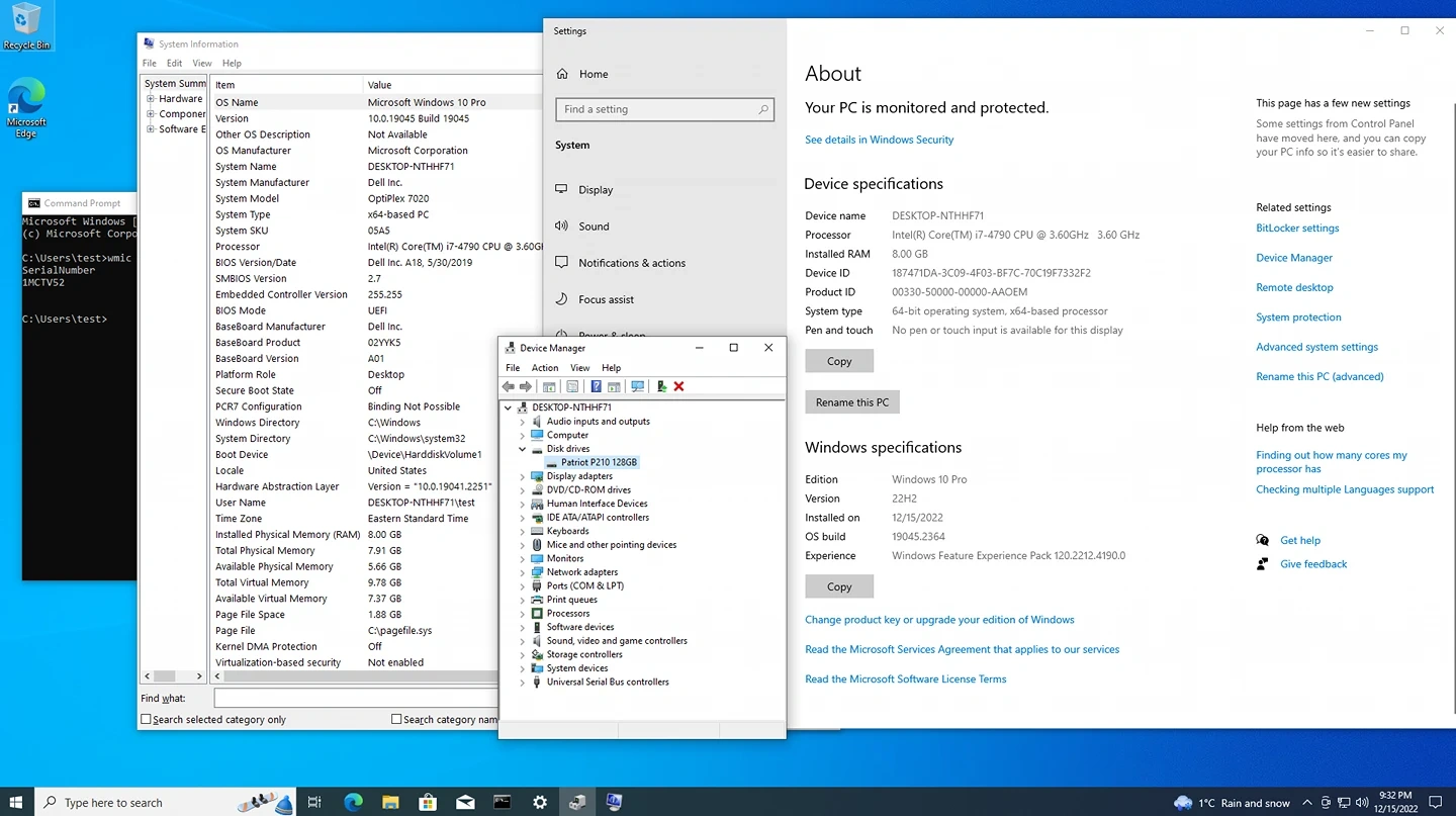 • Cleaned and tested - Great for office work checking emails and day to day tasks with i7 3.60 GHz processor 128 GB SSD and 8 GB of RAM.