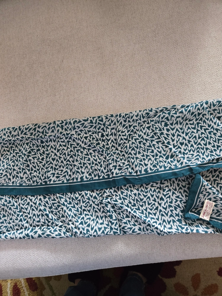 Anne Klein 100% silk Teal and White patterned silk scarf
