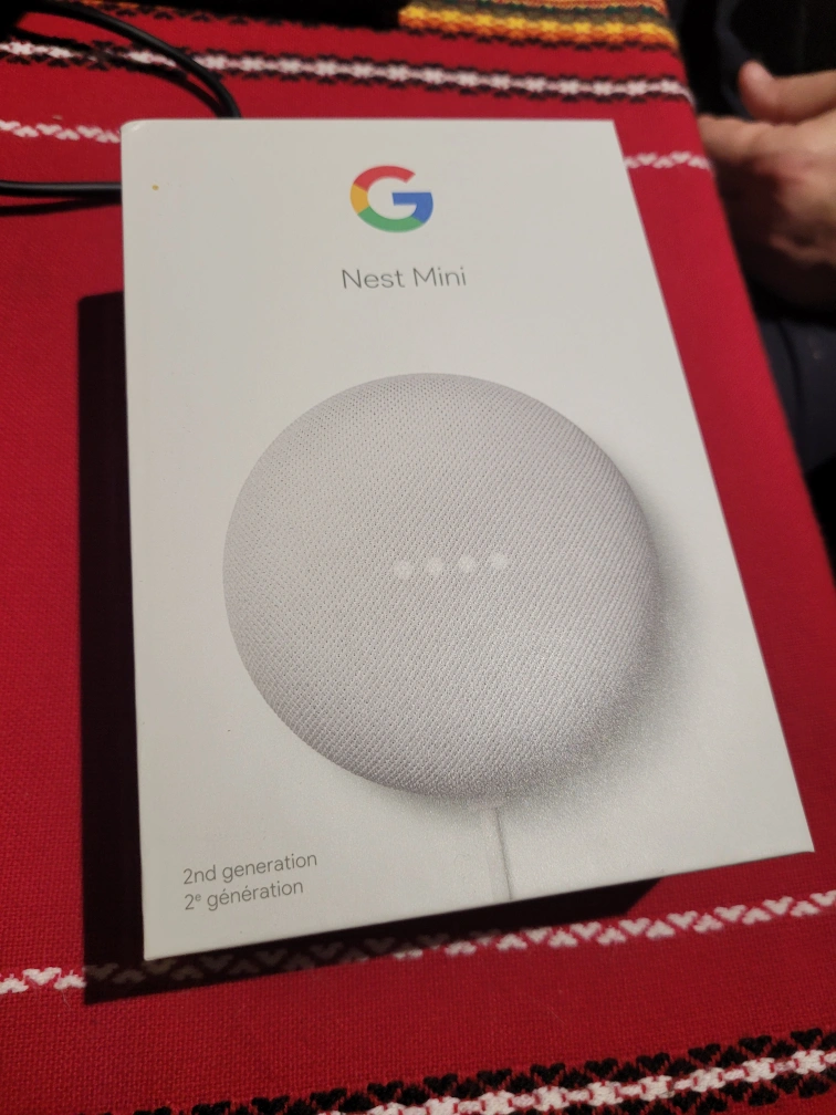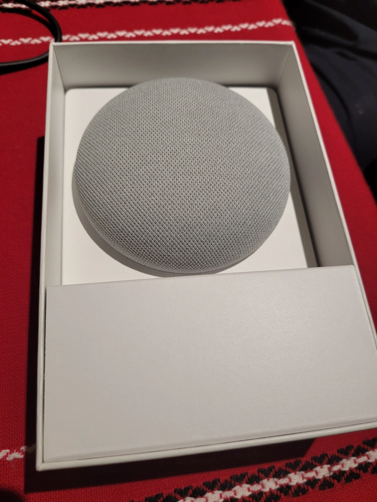 Google Nest Mini, second generation. Chalk colour. Smart speaker. New, in box.