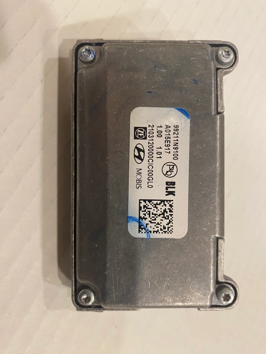 Used Hyundai Mobis Blind Spot Detection Camera Module. Part number 95211N9100. Includes small camera lens. Aluminum housing.