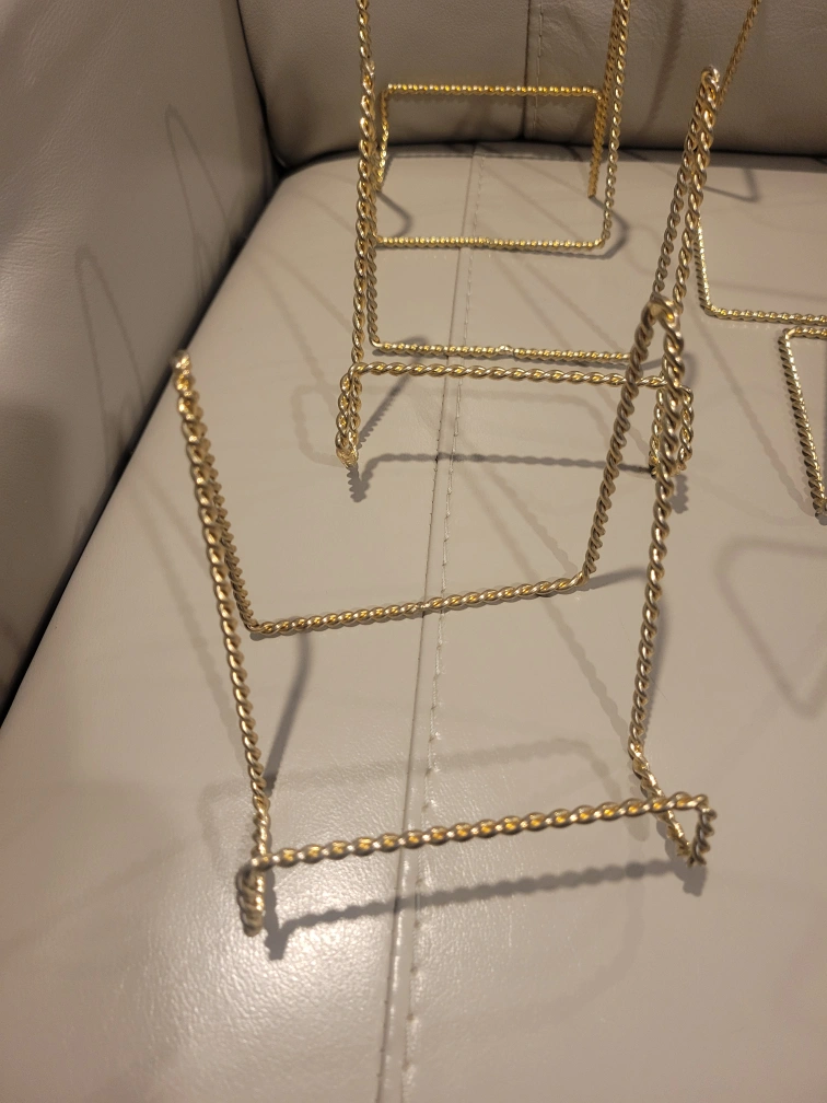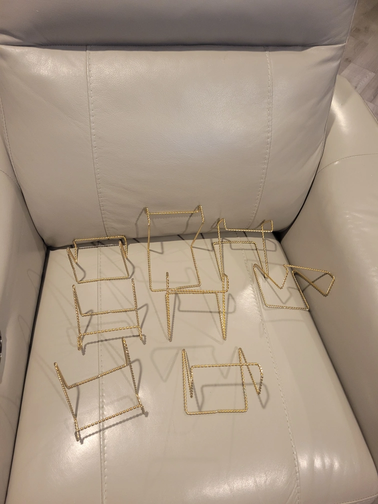 Set of Eight Gold Wire Picture Stands.easel. plate stand