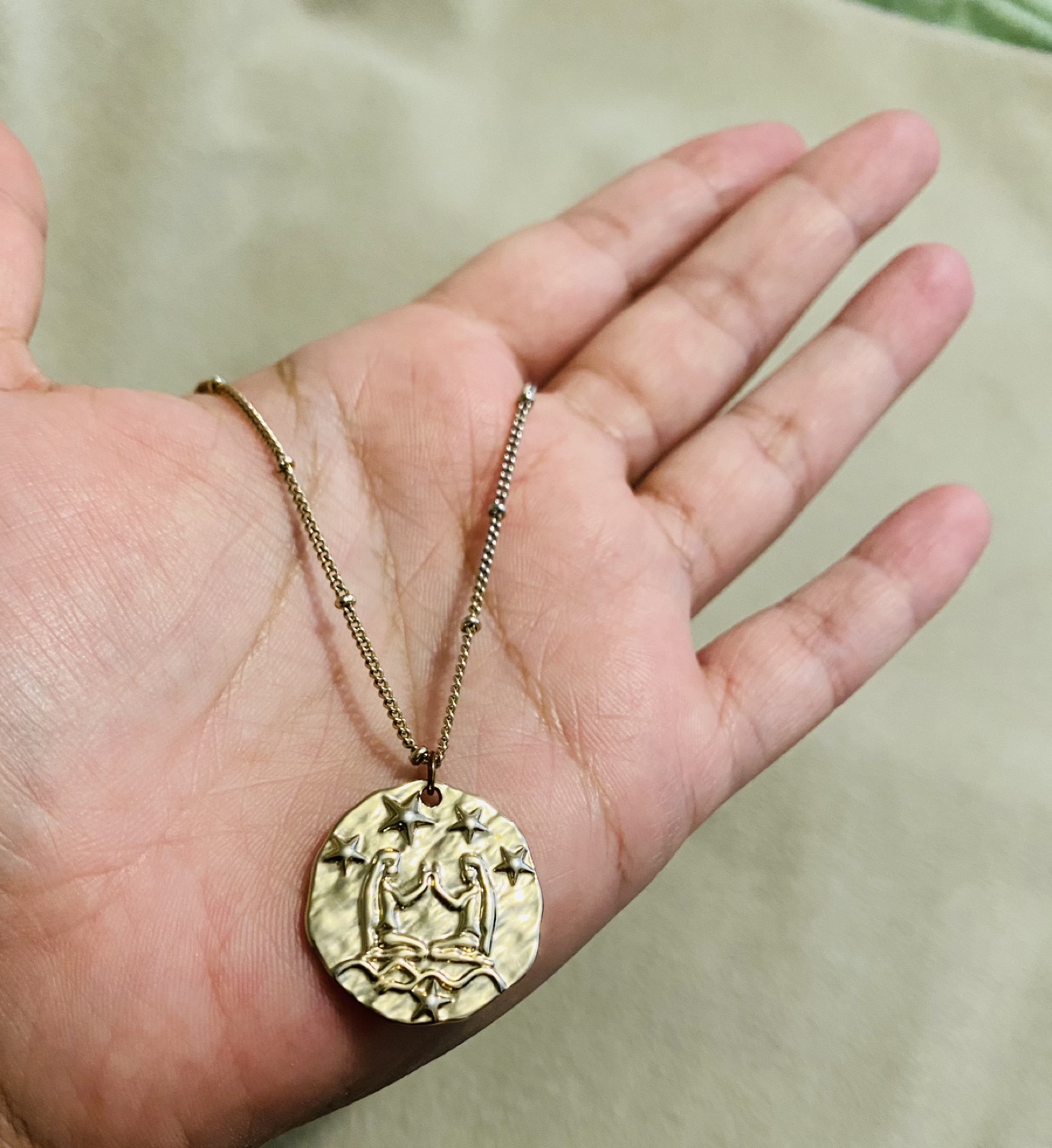1 / 61 / 6Buy & SellCelestial NecklaceCelestial Necklace$5Celestial Necklace with beaded chain. Condition: ExcellentConditionLike newWHERE TO MEETTim hortonsView MapSELLERverifiedMannyElms30223 reviews2 chats·3 favorites·59 viewsSEND CHAT TO SELLERHi Manny! I’m interested in your listing.Hi Manny! I’m interested in your listing.Get the Karrot app to chatSign In to chat