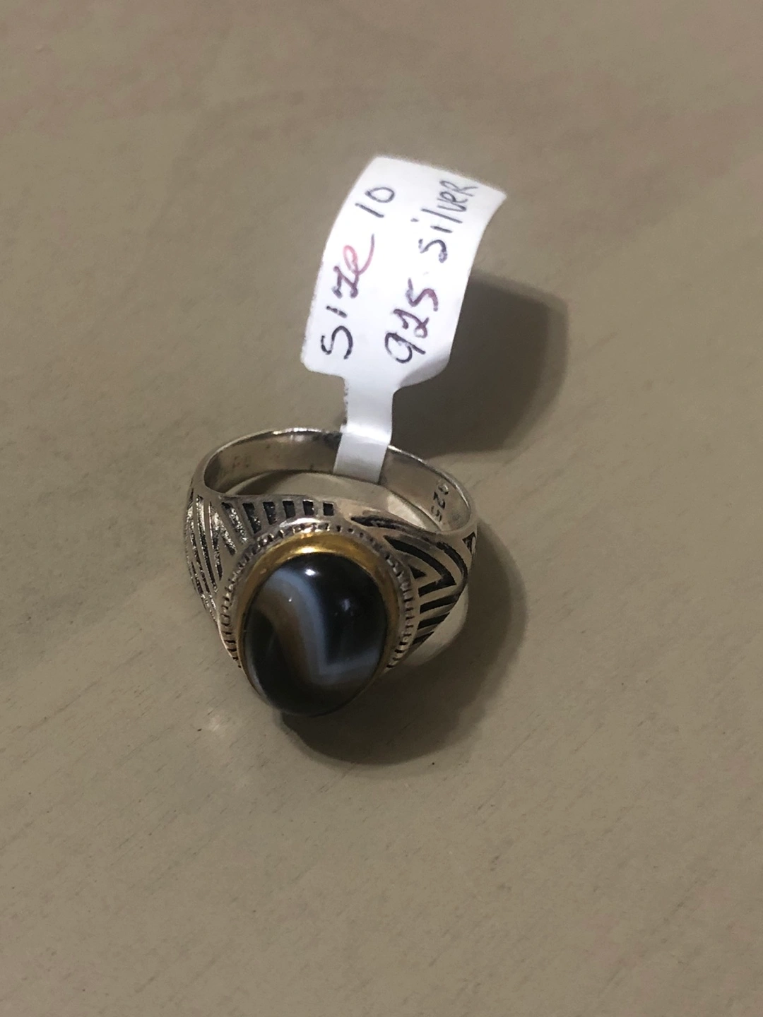 23Sterling silver men's ring. Features an oval onyx stone. Size 10.