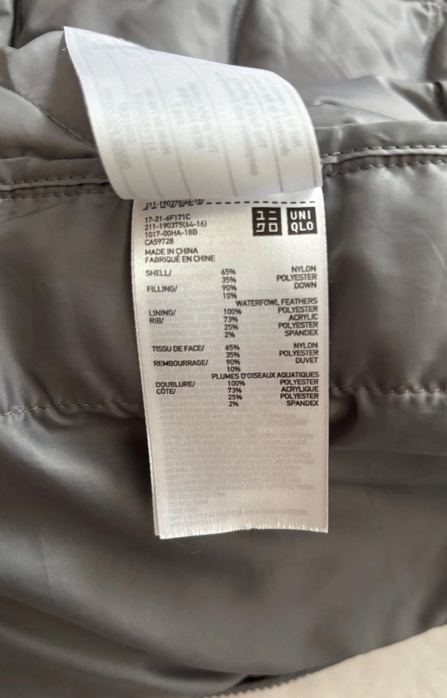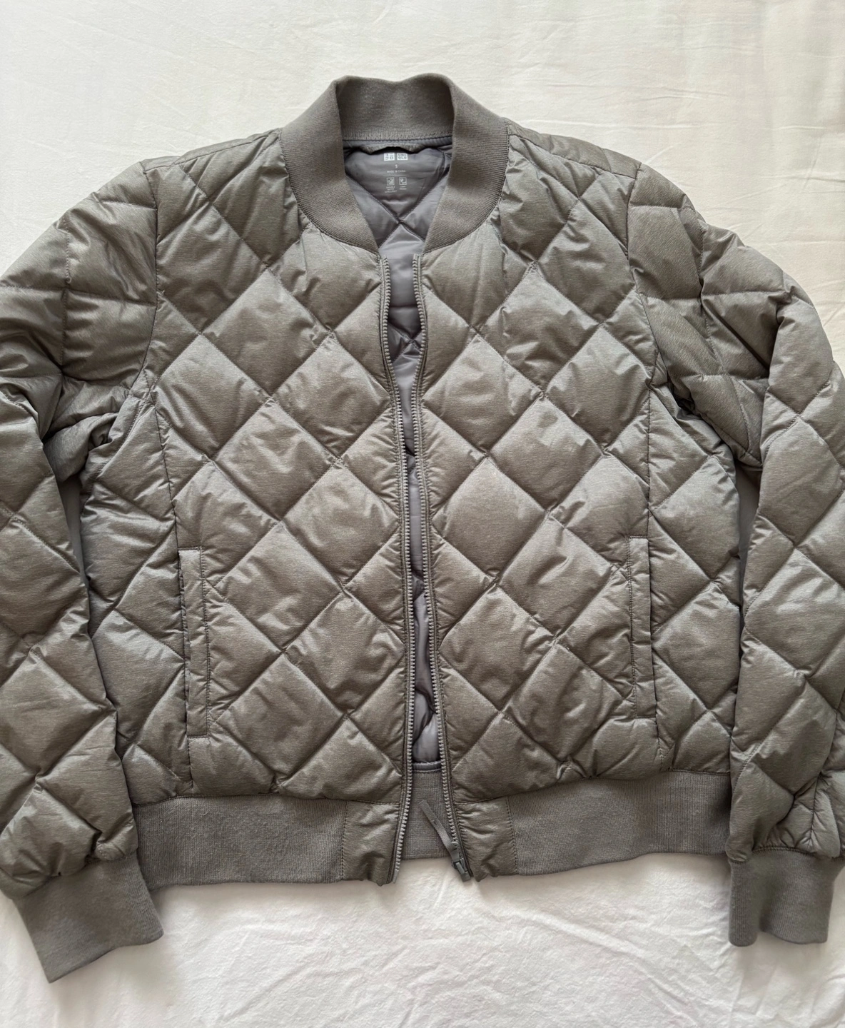 UNIQLO Women's Grey Quilted Down Bomber Jacket (90% Down)