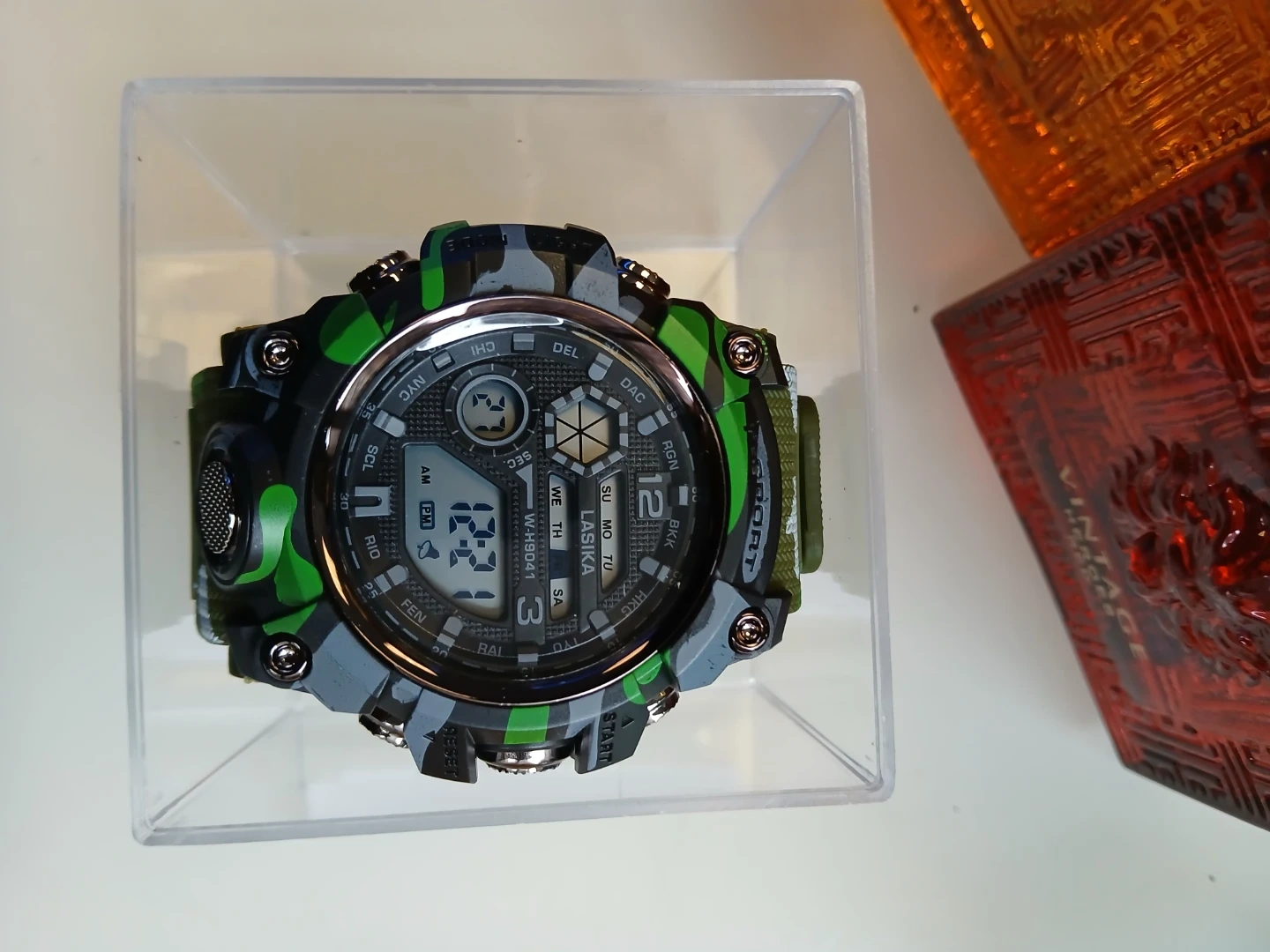 This LASIKA digital sport watch features a camouflage design. It has multiple display modes and functions. It's suitable for outdoor activities and daily wear! $25 each