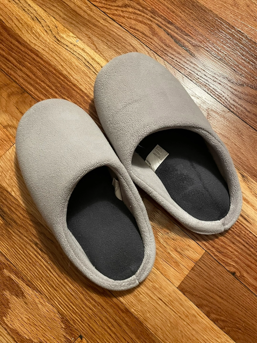 Cozy gray home slippers. Soft, warm and comfortable, perfect for winter and relaxing at home. Easy slip-on style.