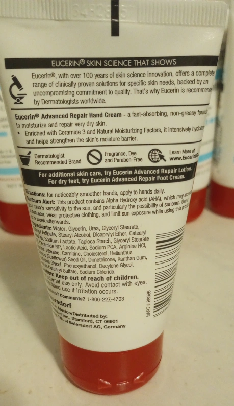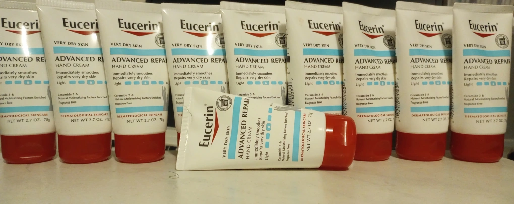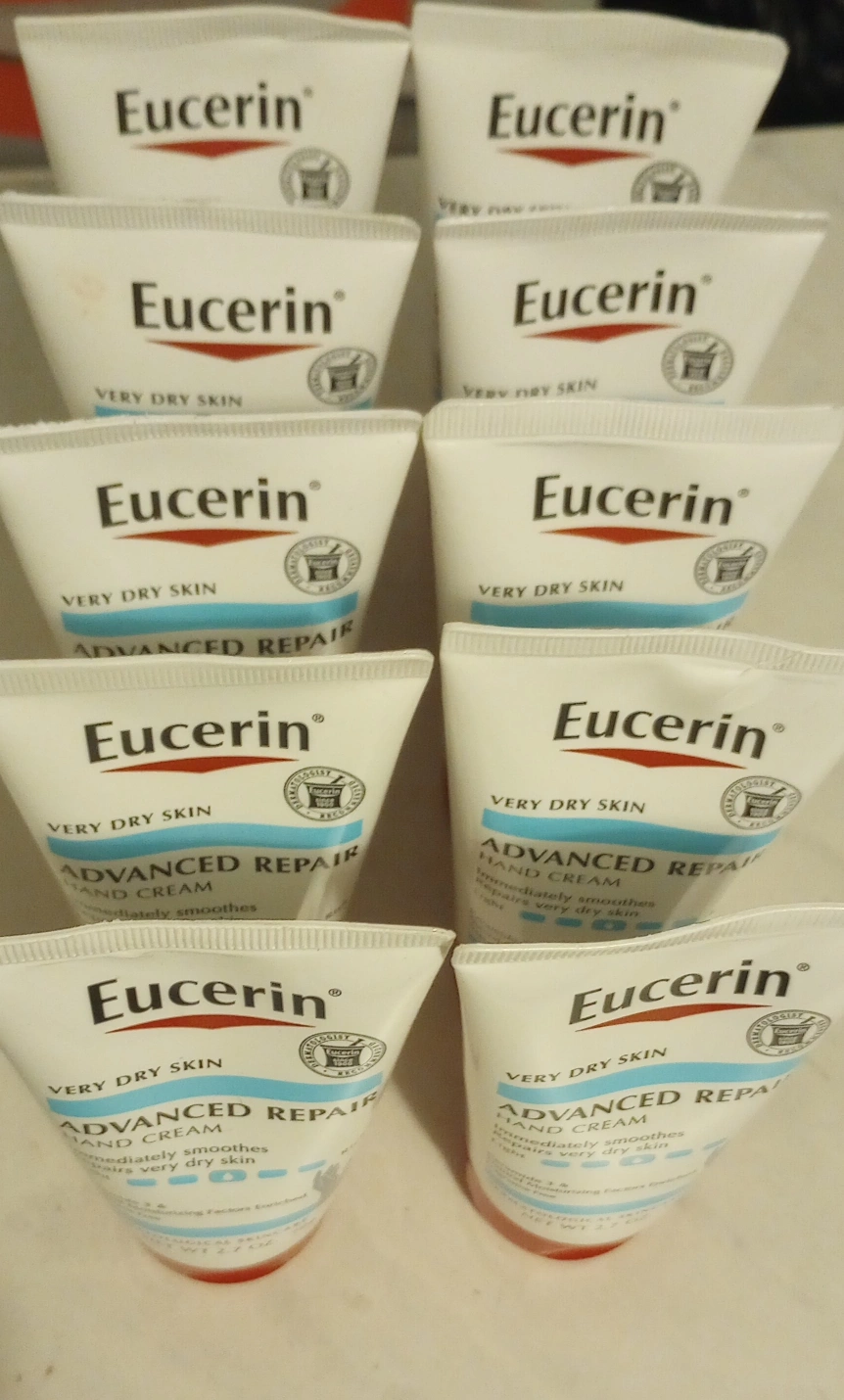 996Selling a set of 10 Eucerin Advanced Repair Lotion Sz. 2.7 oz (78g) each Fragrance, Dye , and Paraben Free Good for very dry, flaky skin Enriched with Ceramide 3 Only available for pickup **Check out my other listings and build a large bundle for delivery; minimum for delivery is $70