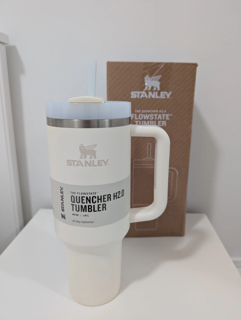 Cream Stanley Quencher H2.0 Flowstate tumbler. 40 oz capacity. Straw included.